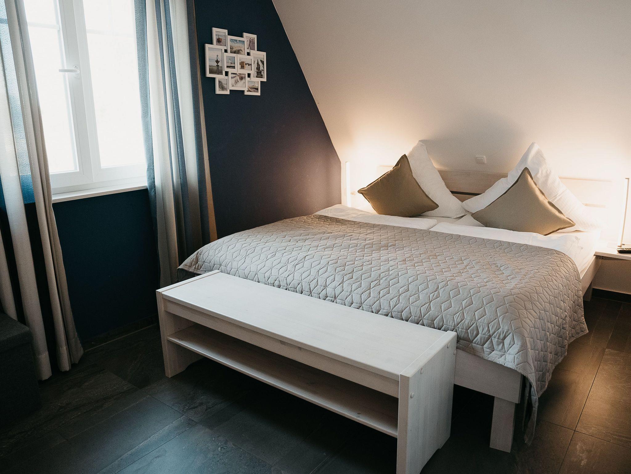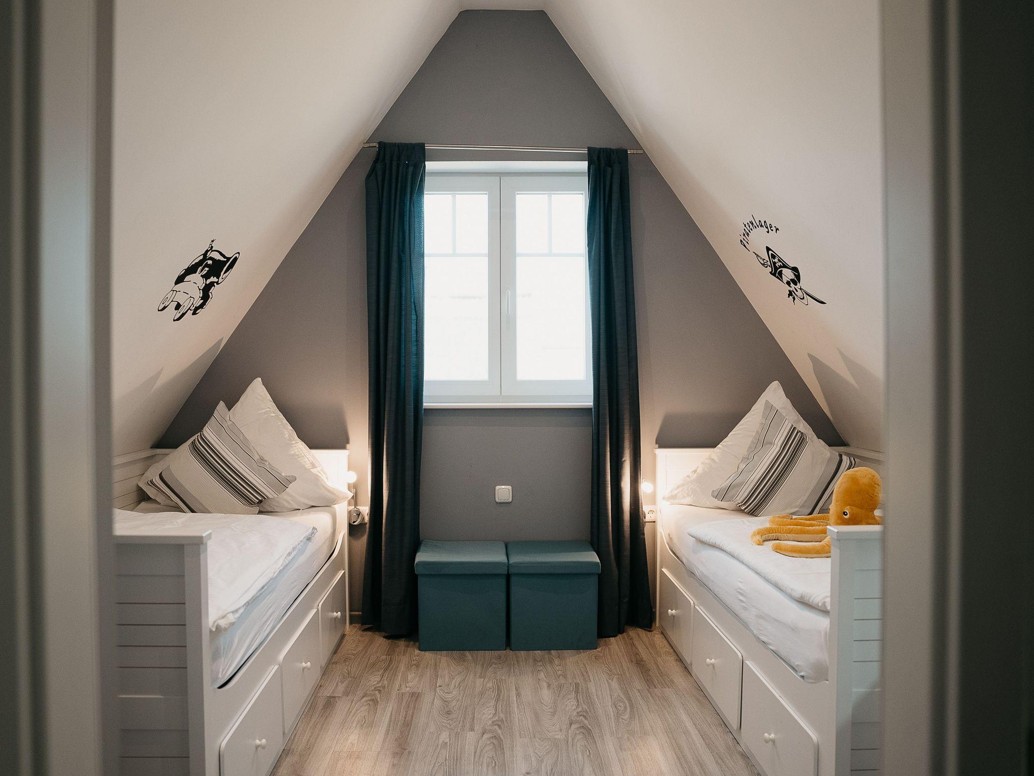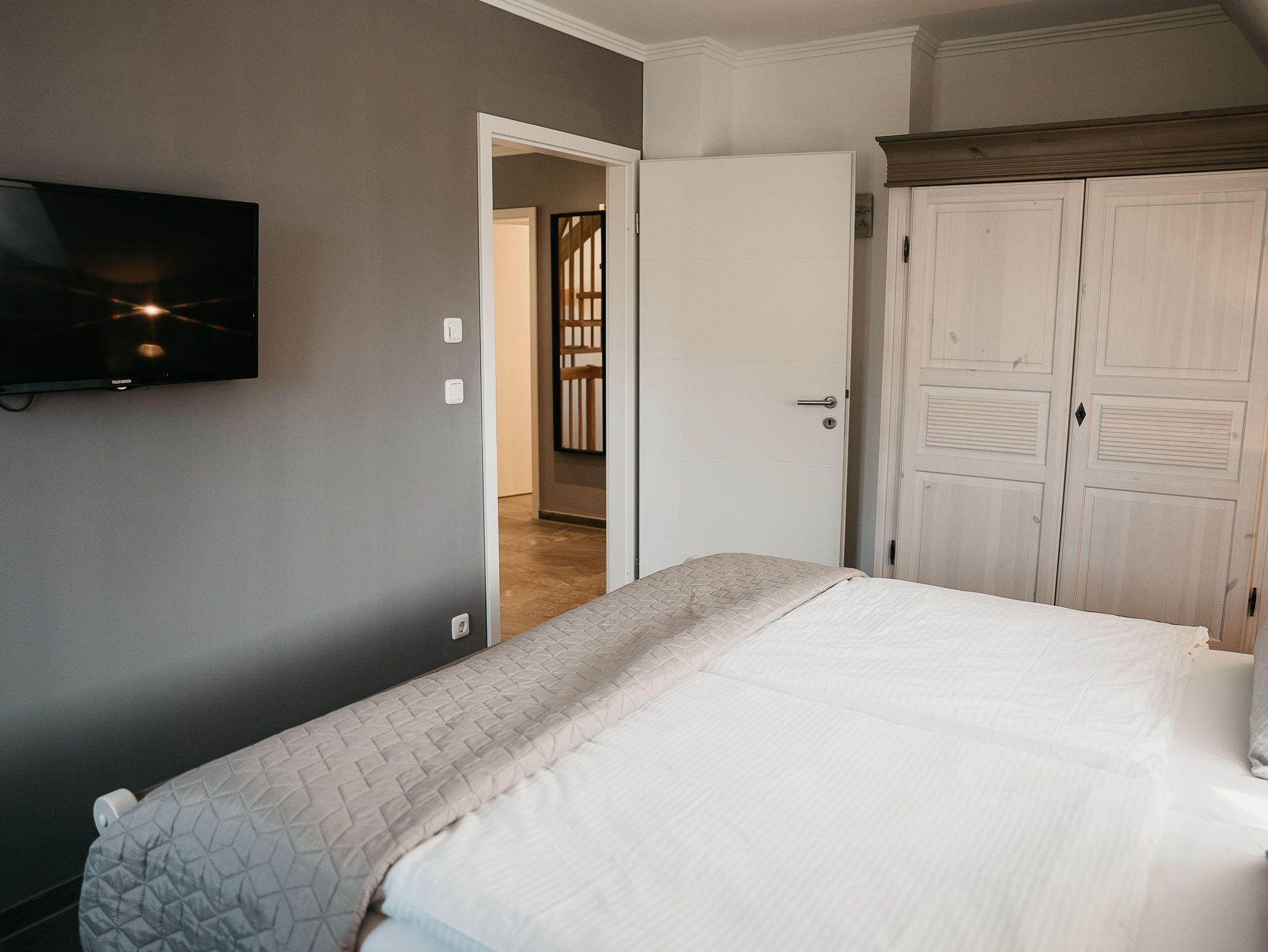 Der Hauseingang befindet sich auf der Nordseite, Sie parken direkt neben dem Haus. Zwei Stellplätze (hintereinander) stehen Ihnen zur Verfügung. Weitere öffentliche Parkplätze können im Osteeferienpark kostenlos genutzt werden. Das Haus hat 5 Schlafzimmer, 4 Schlafzimmer davon haben ein Doppelbett(180x200 cm), Nachtkonsolen, Kleiderschrank und eine Sat-TV Anlage. 1 Schlafzimmer hat zwei Einzelbetten (90x200 cm) sowie ein Schreibtisch und eine Sat- Anlage. Alle Betten sind mit verstellbaren Lattenrost an Fuß- und Kopfteil ausgestattet.