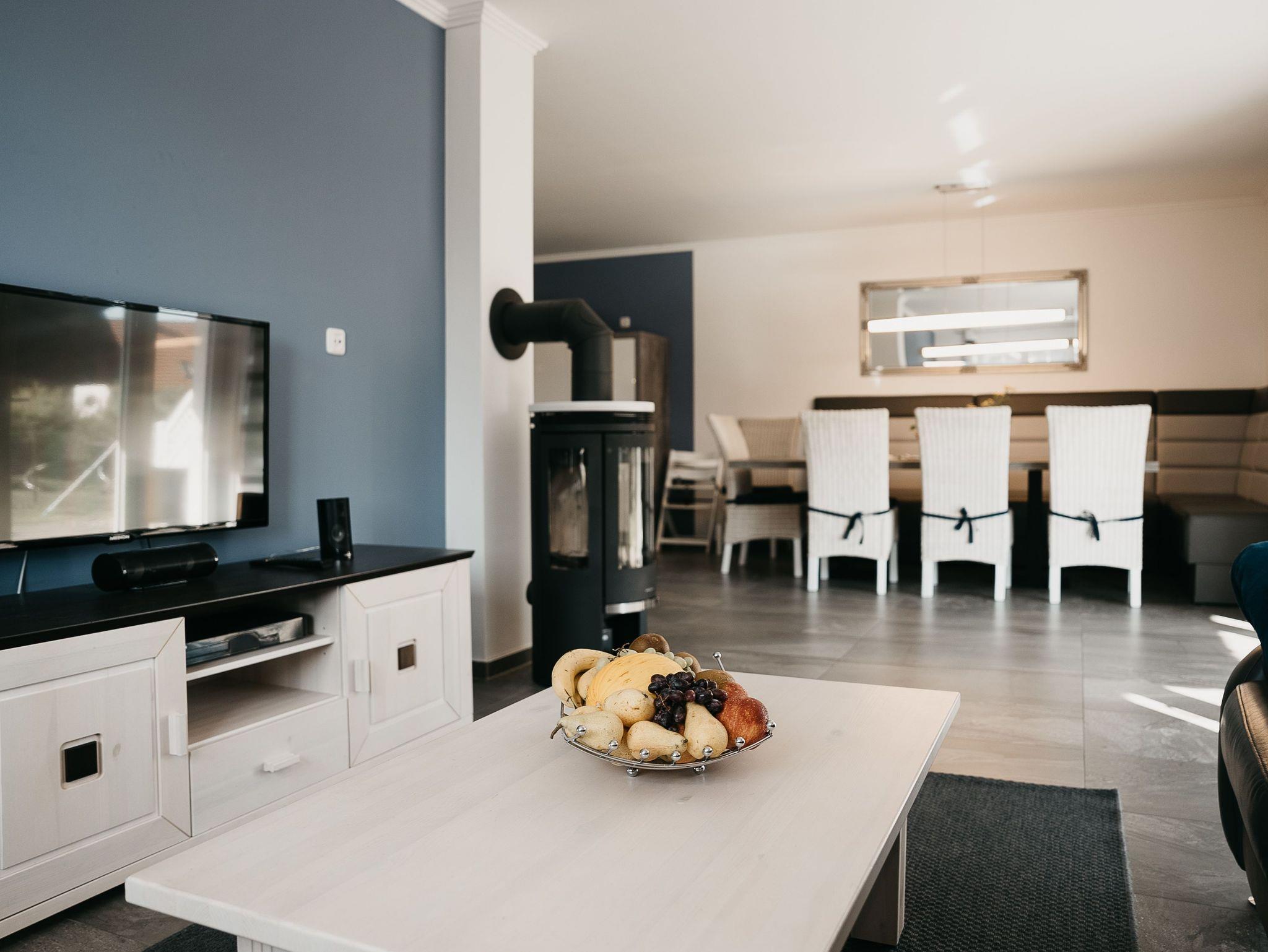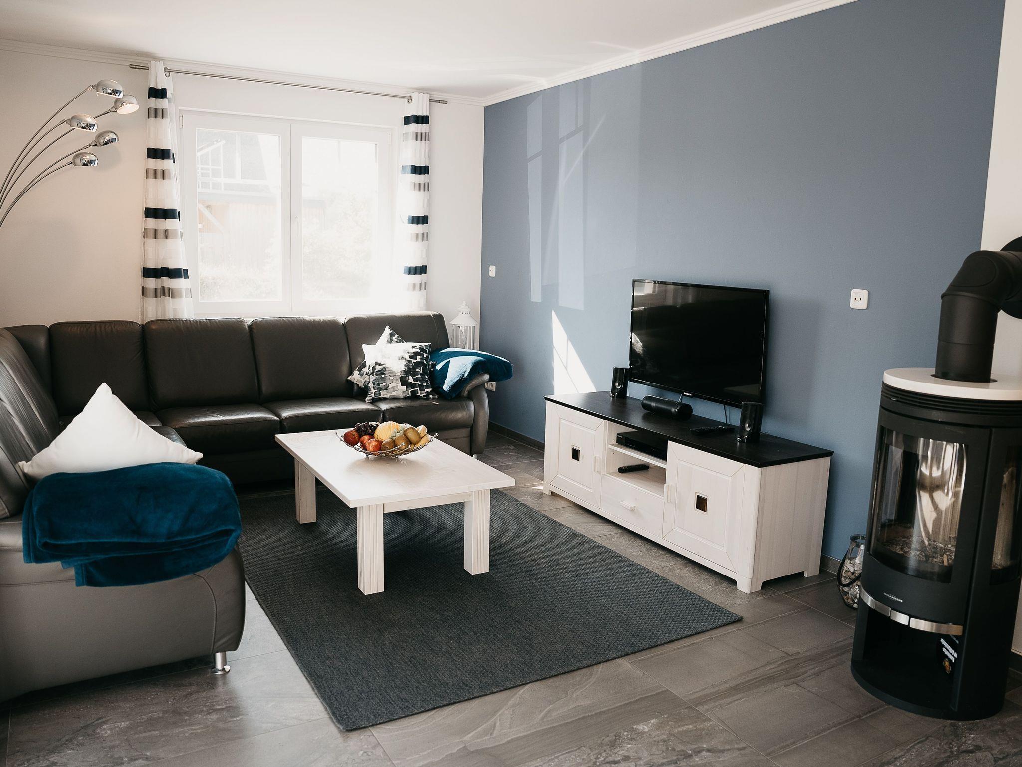 Es erwartet Sie eine gemütliche Lederecke, von der Sie das knistern des Kaminfeuers genießen können.