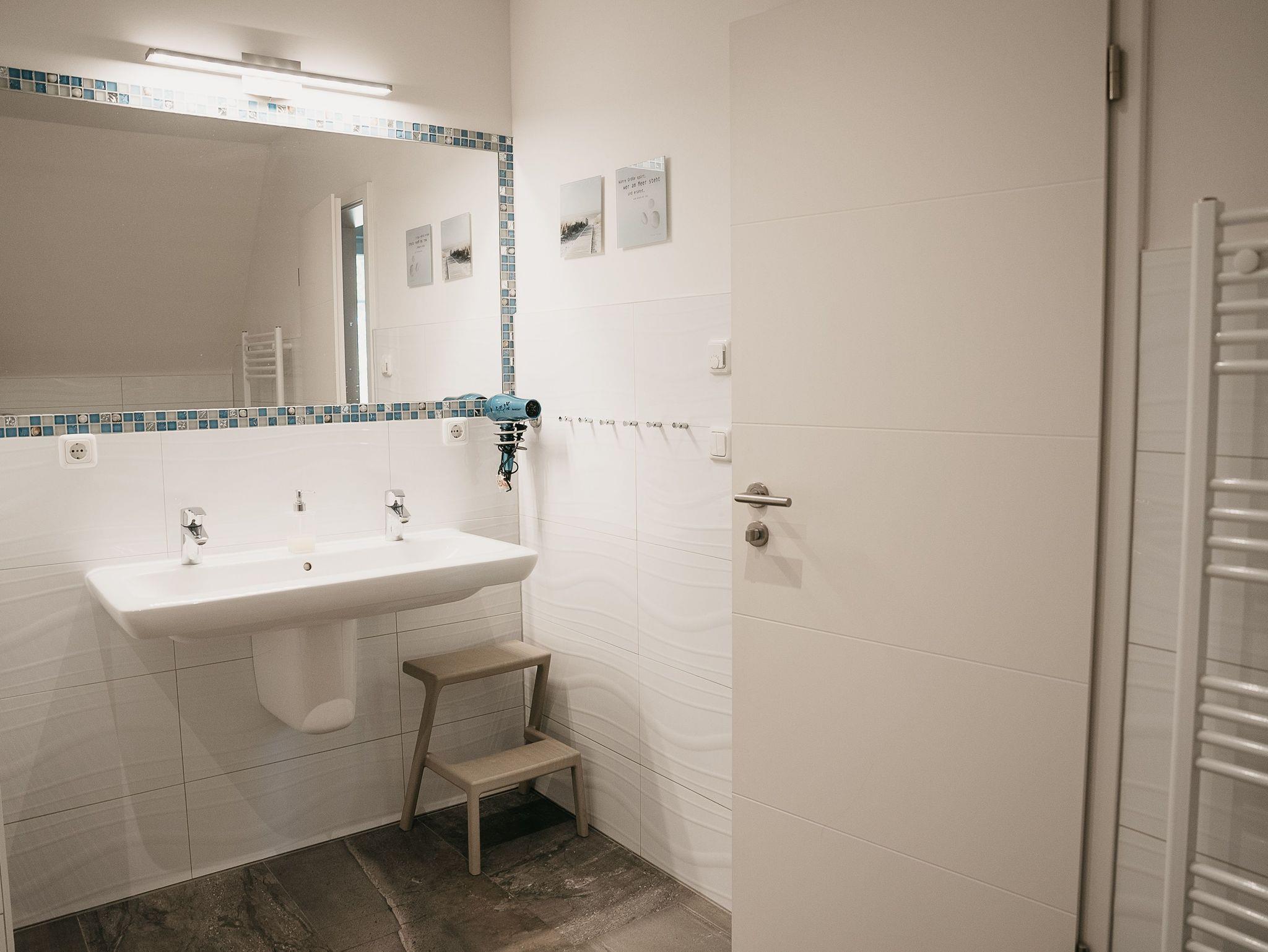 Das Haus hat 2 Bäder, im Erdgeschoss befindet sich ein Saunabad mit einer bodengleicher freibegehbarer Dusche. Das exklusive Bad im ersten 1.EG mit Badewanne, bodengleicher Dusche lädt zum relaxen ein.