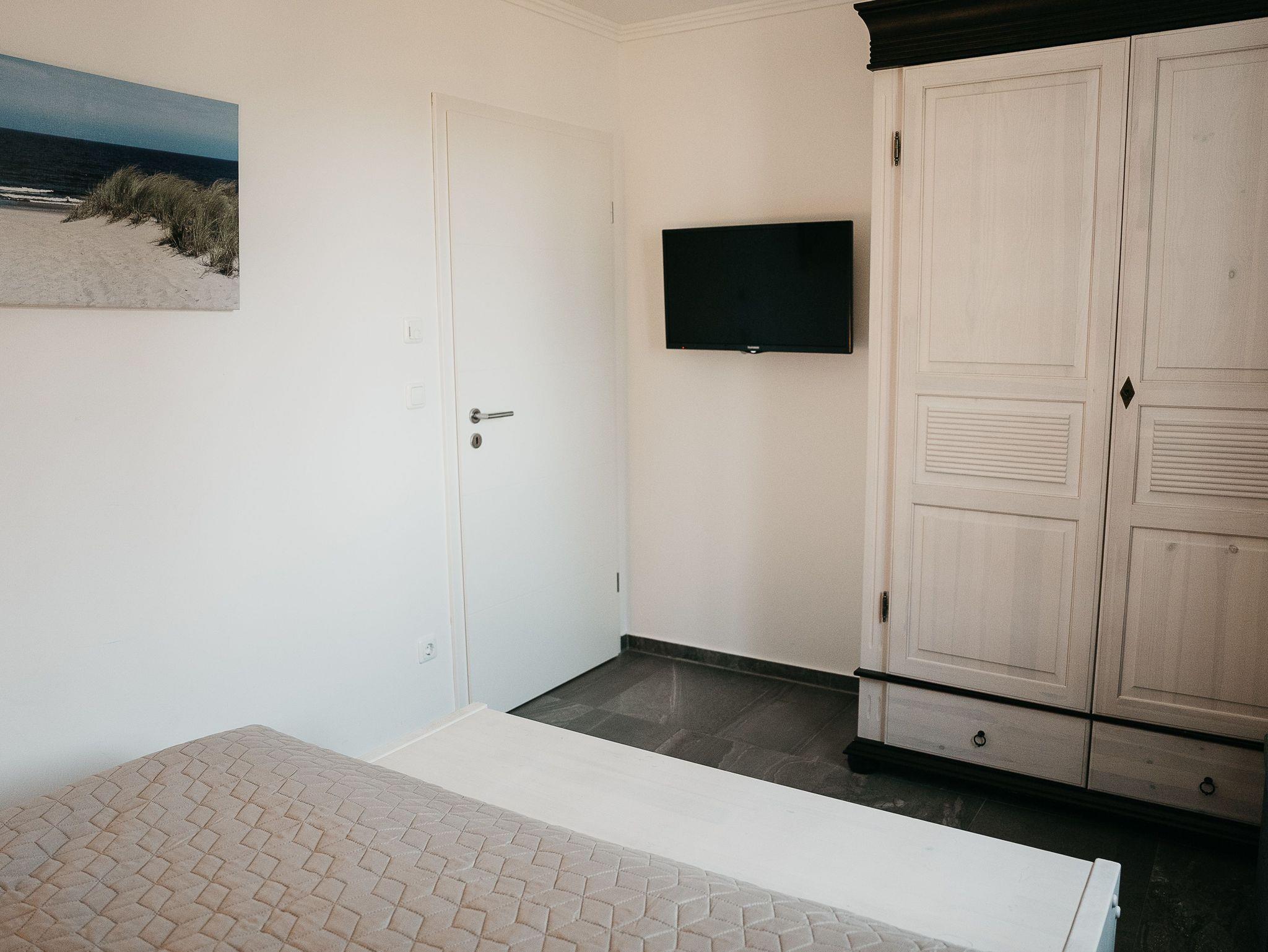 Der Hauseingang befindet sich auf der Nordseite, Sie parken direkt neben de Haus. Zwei Stellplätze (hintereinander) stehen Ihnen zur Vergügung. Weitere Öffentliche Parkplätze können im Osteeferienpark kostenlos genutzt werden. Das Haus hat 5 Schlafzimmer, 4 Schlafzimmer davon haben ein Doppelbett(180x200 cm), Nachtkonsolen, Kleiderschrank und eine Sat-TV Anlage. 1Schlafzimmer hat zwei Einzelbetten (90x200 cm) sowie ein Schreibtisch und eine Sat- Anlage. Alle Betten sind mit verstellbaren Lattenrost an Fuß- und Kopfteil ausgestattet.