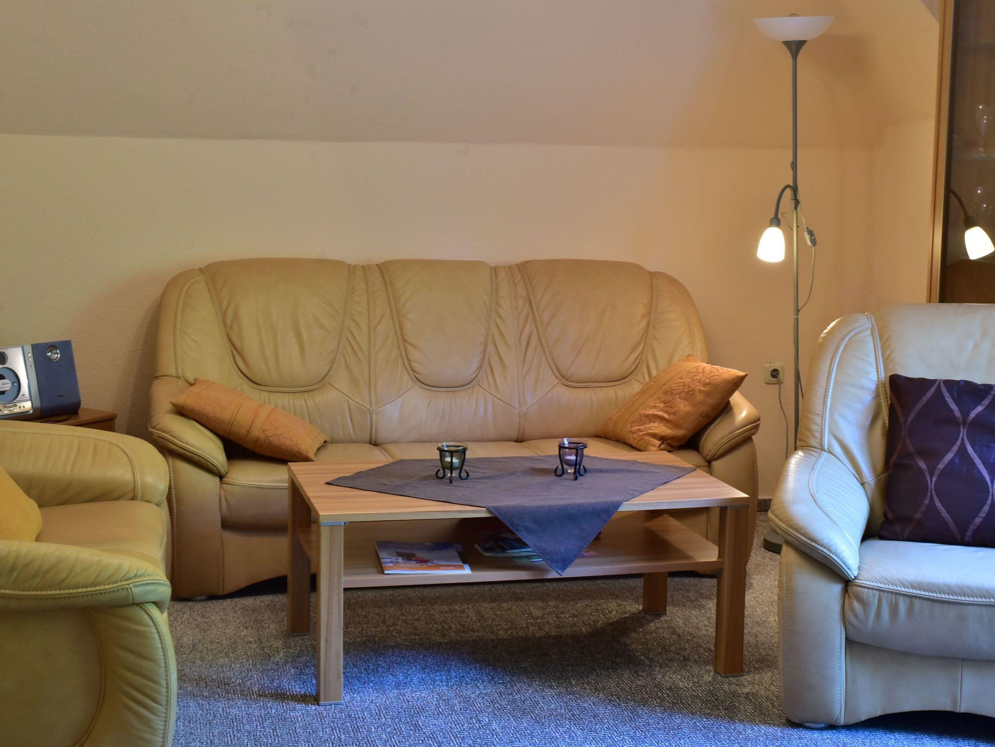 Ferienwohnung über zwei Etagen (1. Et.+ 2. Et.), 3 Schlafzimmer (bis 6 Pers. + Kinderbett/-stuhl), Wohnzimmer mit TV und Radio, große Küche mit Geschirrsp. + Gefrierschrank, Dusche/Badewanne, sep. WC, 2 Balkone, 1 min. z. Strandabgang! Parkplatz auf dem Gründstück!