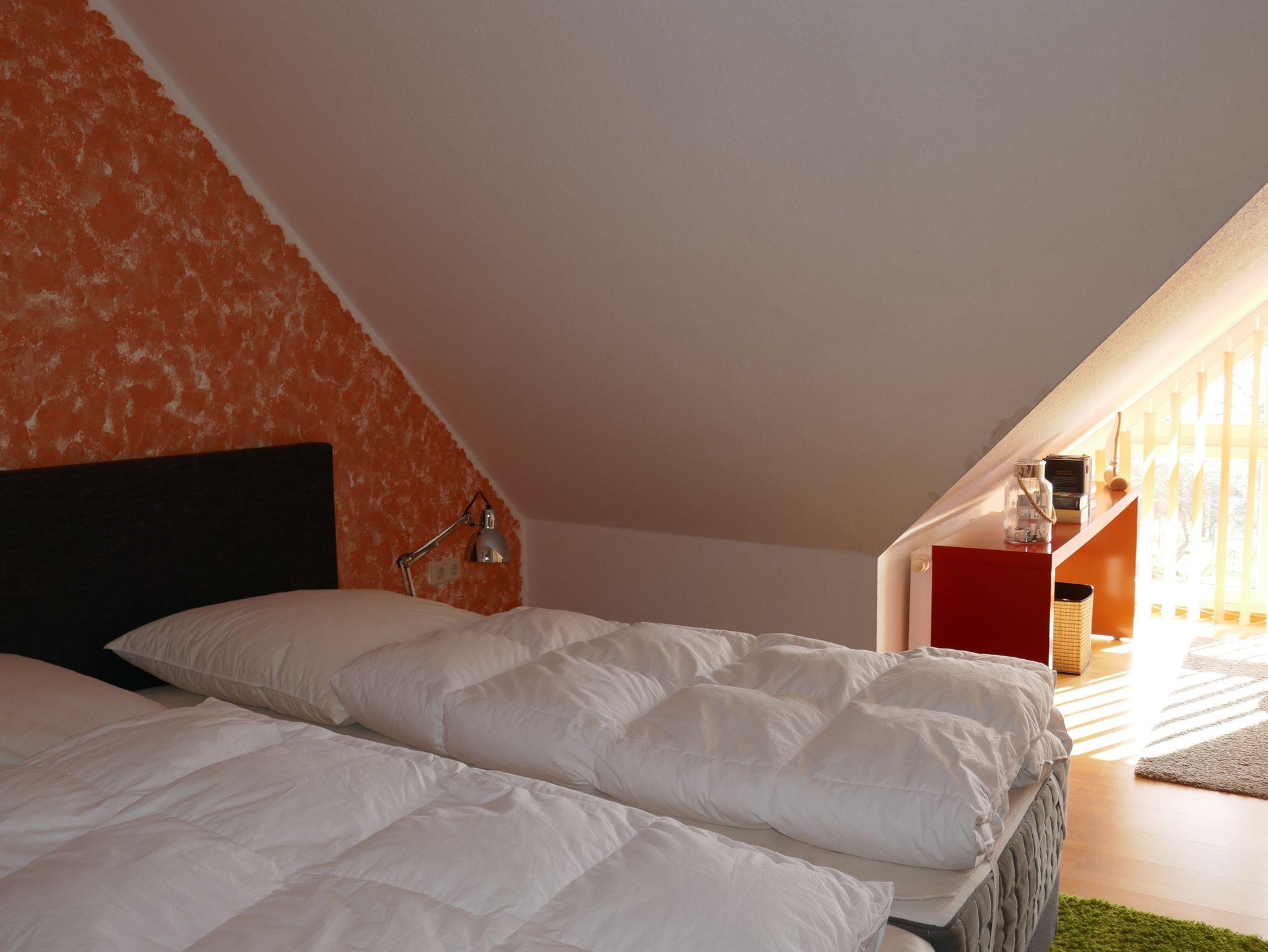 Ein Wohnzimmer mit modern ausgestatteter Küchenzeile mit Backofen und Mikrowelle und DU/WC befinden sich auf der ersten Ebene. Ein Schlafzimmer mit einem Doppelboxspringbett und ein Schlafzimmer mit zwei einzelnen Boxspringbetten liegen eine Treppe höher. Kinderbett und Hochstuhl sind vorhanden, Bettwäsche bitte mitbringen oder mieten - 20.00 Euro/Pers.,Balkon mit Blick zum Salzhaff, Tiefgaragenstellplatz inklusive, Sauna (3 x wöchentl.) und Schwimmbad im Haus und kostenfrei nutzbar, Solarium ebenfalls im Haus gegen Entgelt.