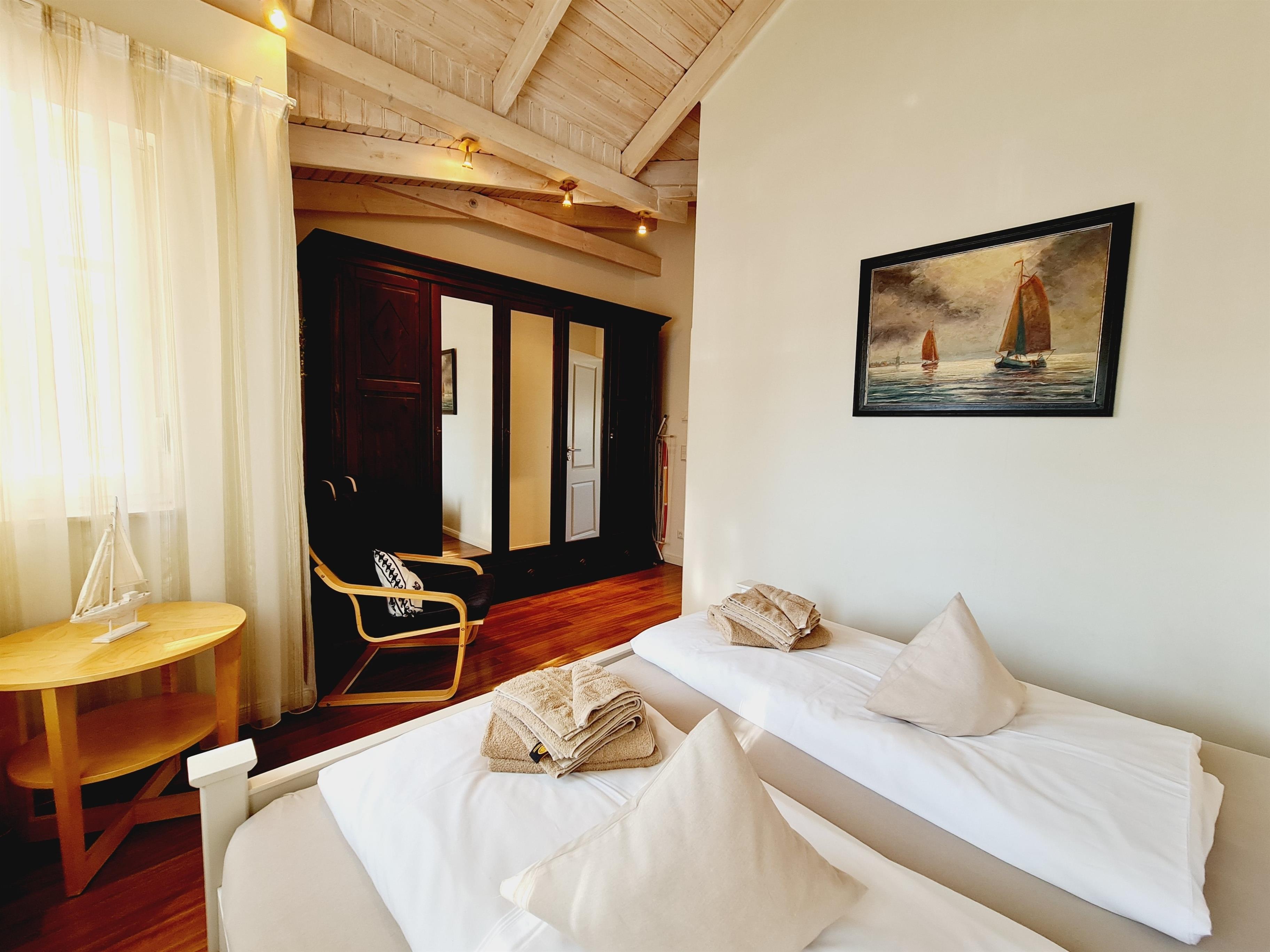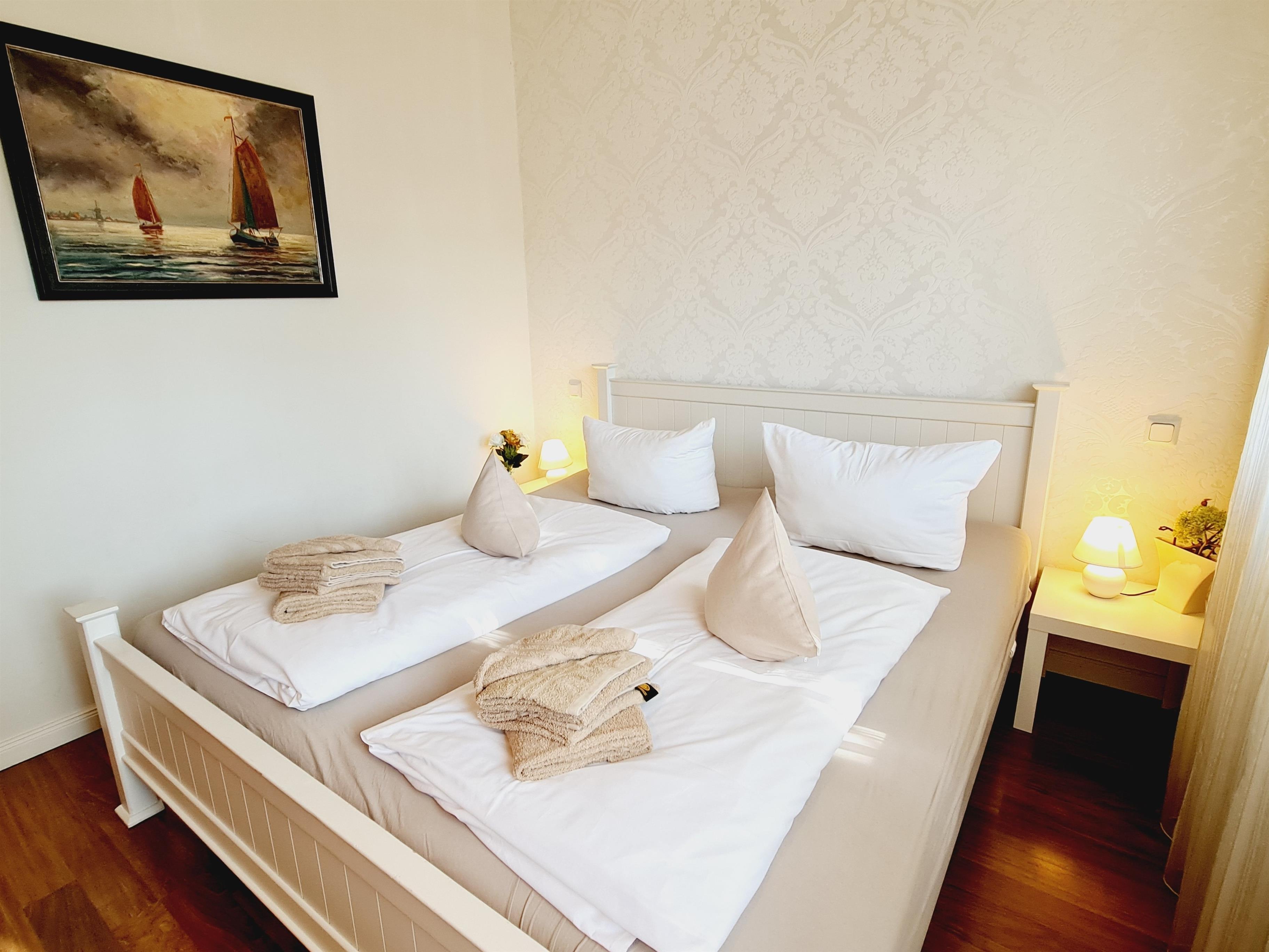 Die Ferienwohnung verfügt über eine moderne, hochwertige Ausstattung und bietet viel Platz für 2 bis 4 Personen (1Doppelbett, 2 Einzelbetten und ein Babybett.)