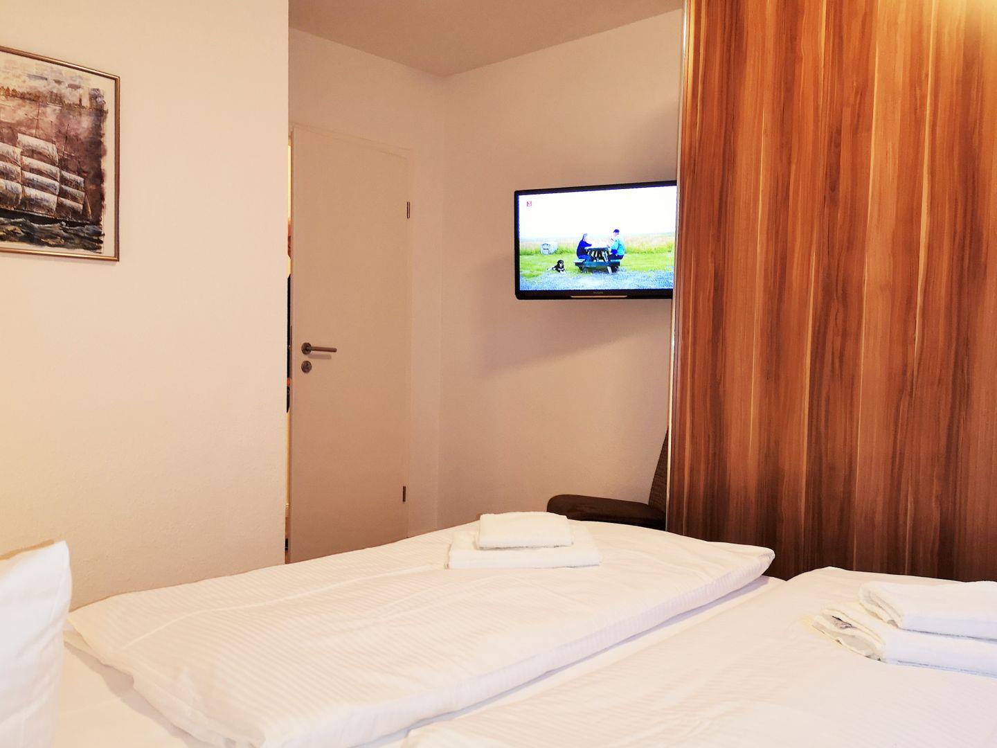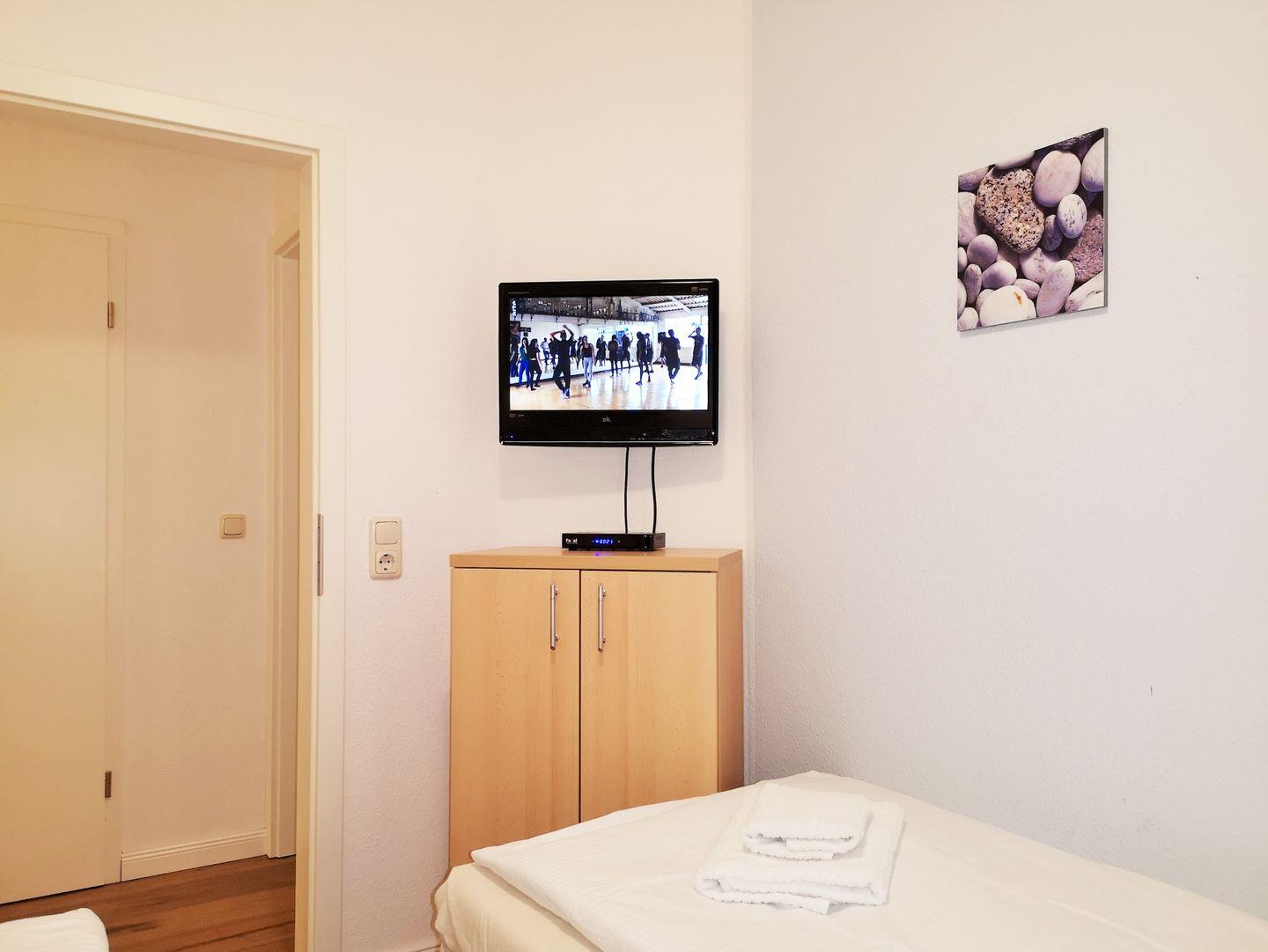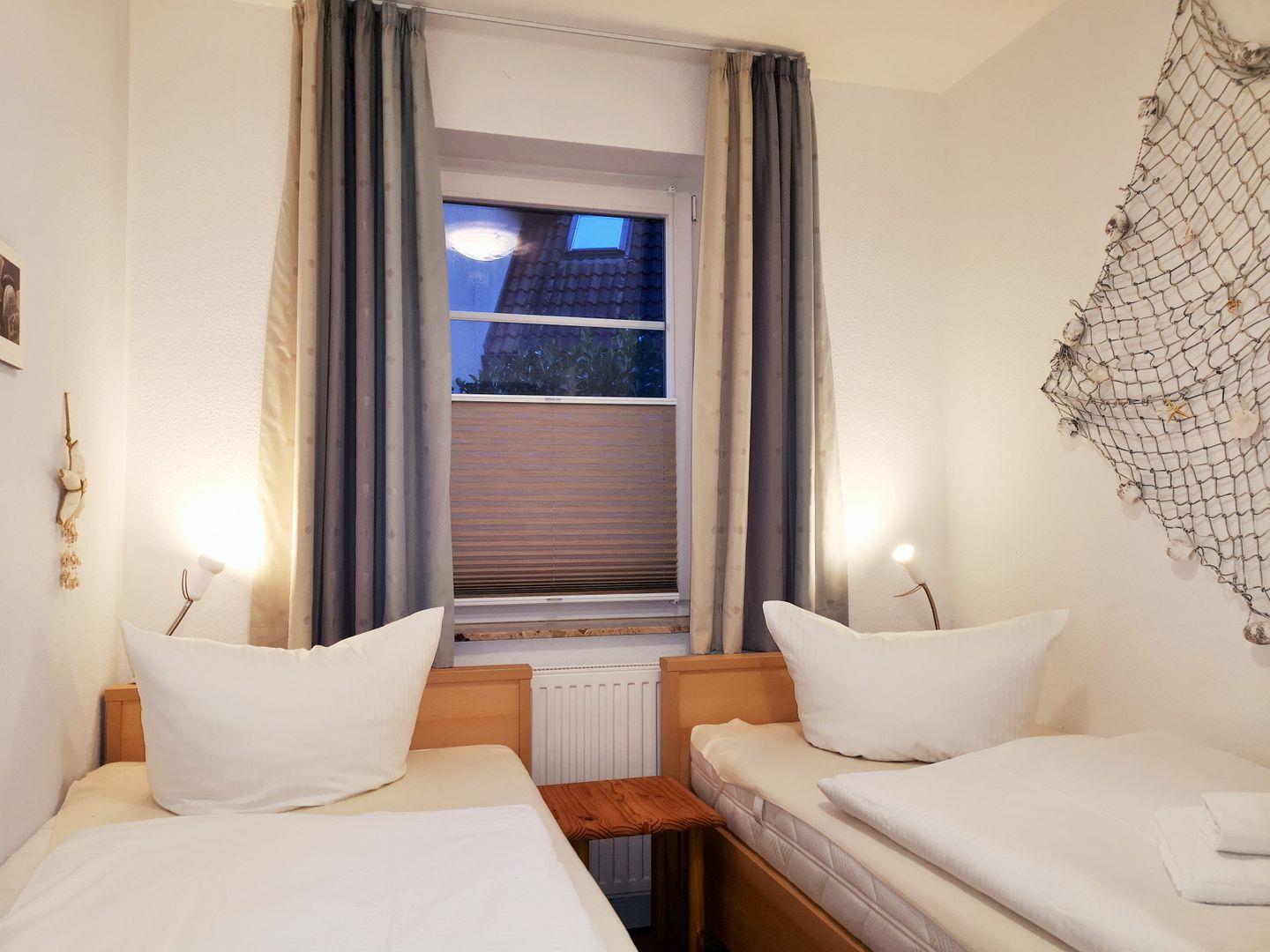 Das separate 2. Schlafzimmer verfügt über 2 getrennte Einzelbetten, einen Nachttisch sowie 2 Kommoden. Auch in diesem Zimmer steht Ihnen ein TV-Gerät zur Verfügung.