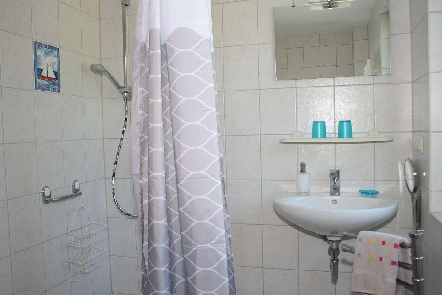 Familienurlaub mit 4 Personen, aber alles ebenerdig. Das bietet Ihnen diese Ferienwohnung. Bodengleicher Eingang, alle Räume befahrbar und zum Frühstück ins Freie, was will man mehr!? Auf ca. 70 m² haben wir zwei Schlafzimmer, ein Badezimmer, sowie einen Wohnbereich mit offener integrierter Komplettküchenzeile für Sie bereitet. Alles kann auch mit einem Rolli genutzt werden. Dafür sprechen unsere Erfahrungen und die „Wiederholungstäter“ der voraus gegangenen Jahre. Es gibt im Hauptschlafzimmer ein Doppelbett (180x200) und im zweiten Schlafzimmer zwei Einzelbetten in einstellbarer und unterfahrbarer Komforthöhe. Ebenfalls verfügt dieses Zimmer über eine weitere Aufbettungsmöglichkeit in Form eines Unterschubbettes (90x190). Das Badezimmer mit Duschbad (90x90) sowie unterfahrbarem Waschtisch und WC ist ebenfalls stufen- und schwellenfrei.