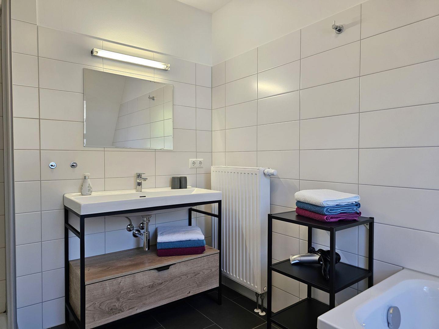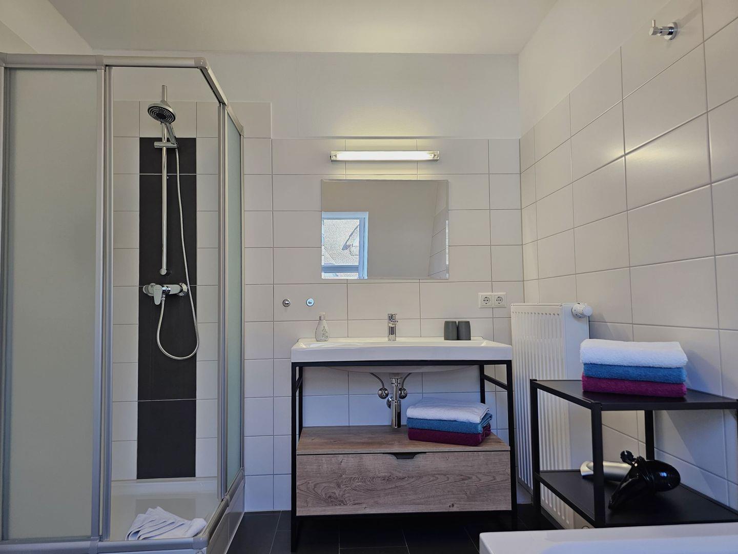 Für einen angenehmen Aufenthalt sind auch weitere praktische Einrichtungen vorhanden, wie ein gemeinschaftlich genutzter Trockner und eine Waschmaschine, Bügeleisen sowie ein Wäscheständer. Ein privater Parkplatz für zwei Fahrzeuge rundet das Angebot ab. Bettwäsche und Handtücher können gegen eine Gebühr hinzugebucht werden.