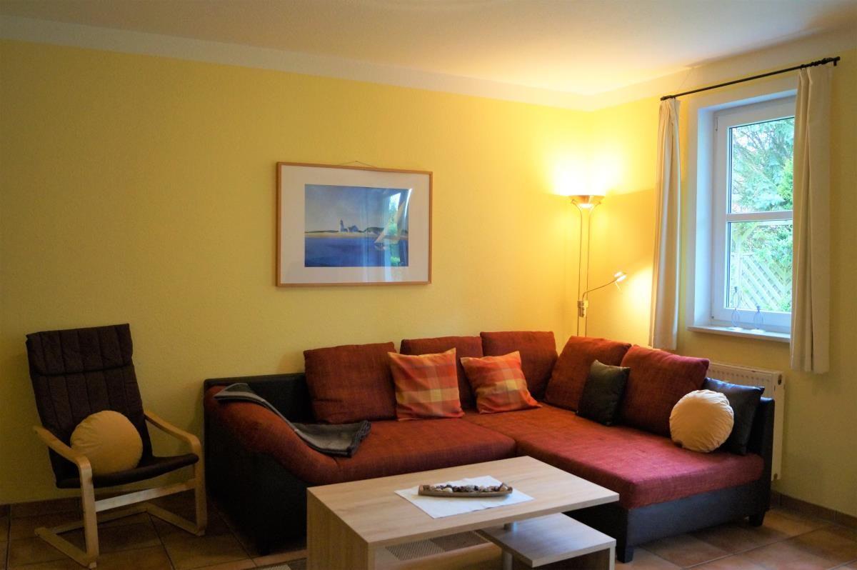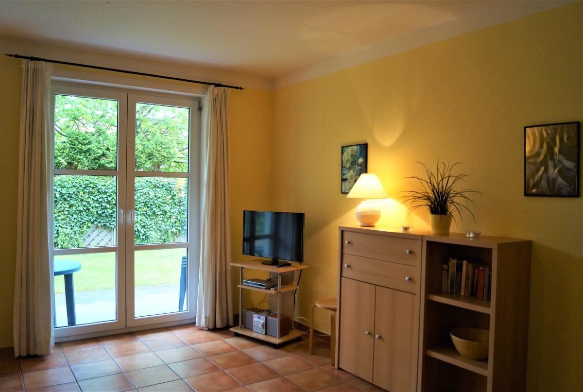 Wohnen und KochenDie 54m² große Erdgeschosswohnung bietet ausreichend Platz für die vierköpfige Familie. Es gibt einen großzügigen Wohnraum mit Sitz- und Essecke sowie integrierter Einbauküche. Hier sind alle Gerätschaften vorhanden, um sich im Urlaub selbst verköstigen zu können. Im Wohnbereich sorgt ein moderner Flachbild-TV für gute Unterhaltung.