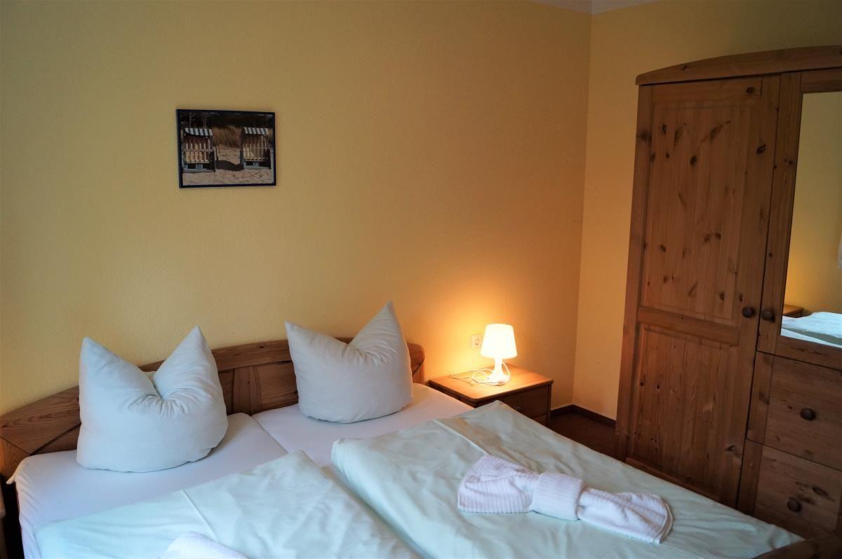 SchlafzimmerIn dem separaten Schlafzimmer stehen ein Doppelbett sowie ein geräumiger Kleiderschrank. Weitere Schlafmöglichkeiten bietet die Ausziehcouch im Wohnzimmer.