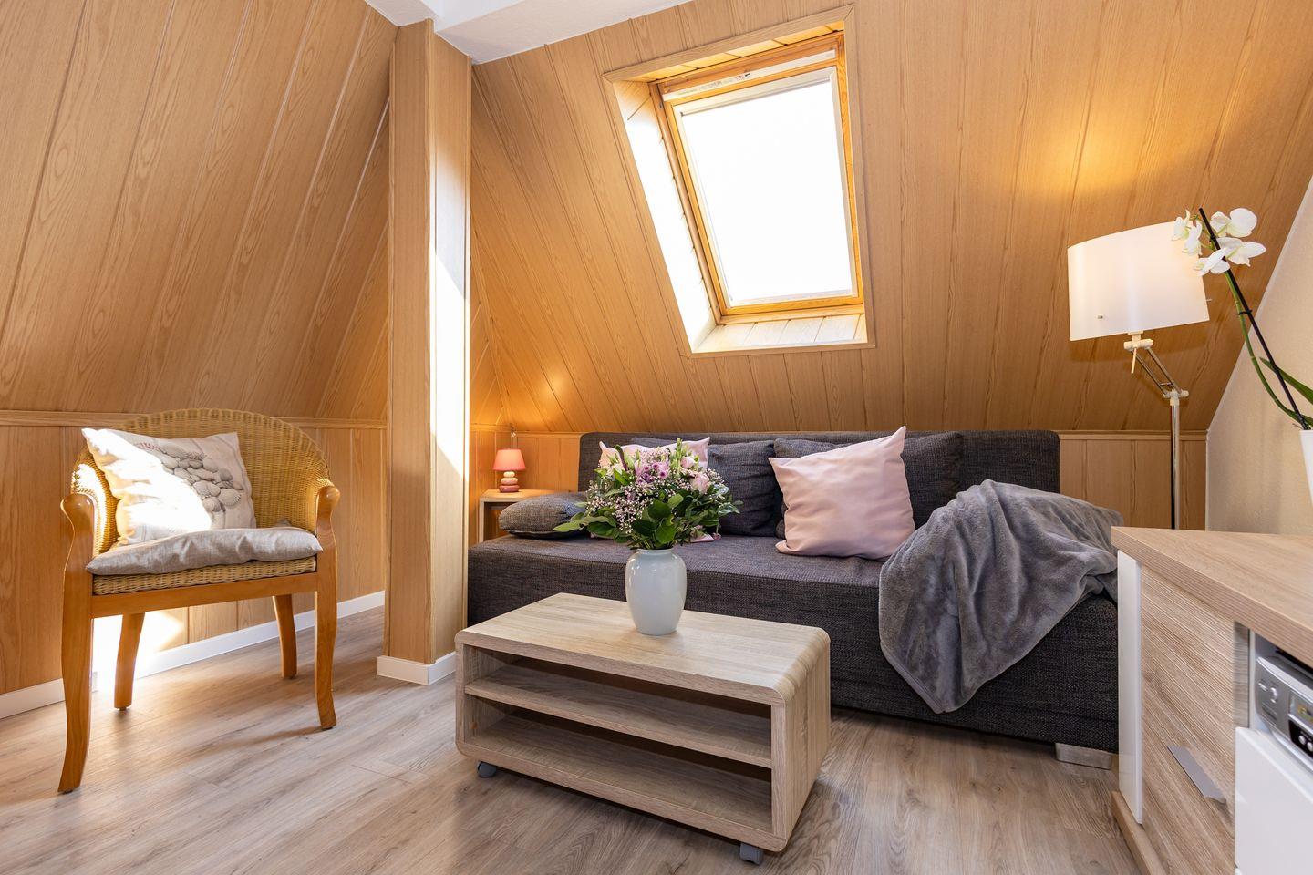 Der gemütliche Wohnbereich ist mit einem Laminatboden ausgelegt, verfügt über eine Sofaecke sowie weitere Sitzgelegenheiten, sodass Sie nach einem erlebnisreichen Tag entspannen können. Für Unterhaltung sorgen ein Flachbild-TV mit einer Größe zwischen 25 und 34 Zoll, ein DVD-Spieler sowie ein Blu-ray-Spieler. Selbstverständlich steht Ihnen kostenfreies WLAN zur Verfügung.