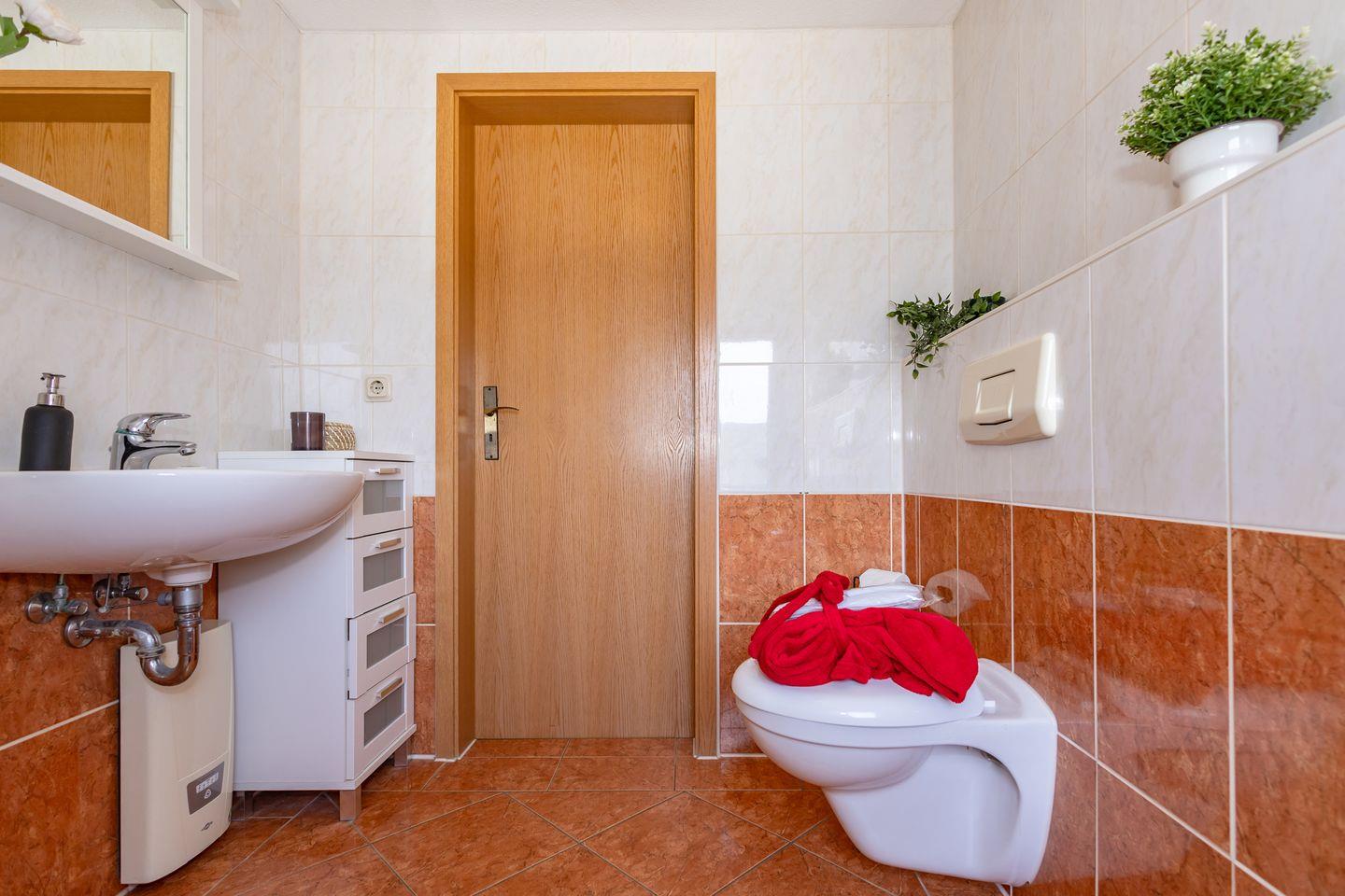 Die Unterkunft liegt im 2. Obergeschoss. Zur Ferienwohnung gehört eine private, möblierte Terrasse mit Sonnenschirm, auf der Sie entspannte Stunden im Freien genießen können. Ebenfalls vorhanden ist ein Grillplatz, ideal für gemeinsame Grillabende. Gartenmöbel stehen Ihnen zur Verfügung. Familienfreundliche Extras wie ein Sandkasten unterstreichen die Eignung der Ferienwohnung für Gäste mit Kindern. Zudem steht Ihnen ein privater Parkplatz am Haus zur Verfügung.