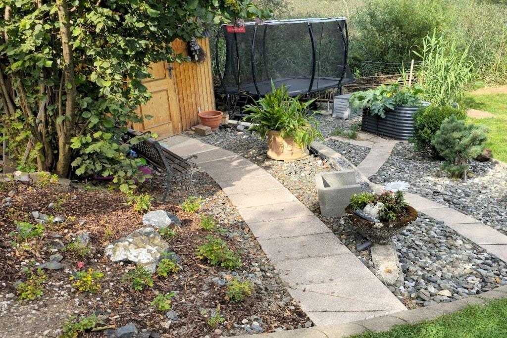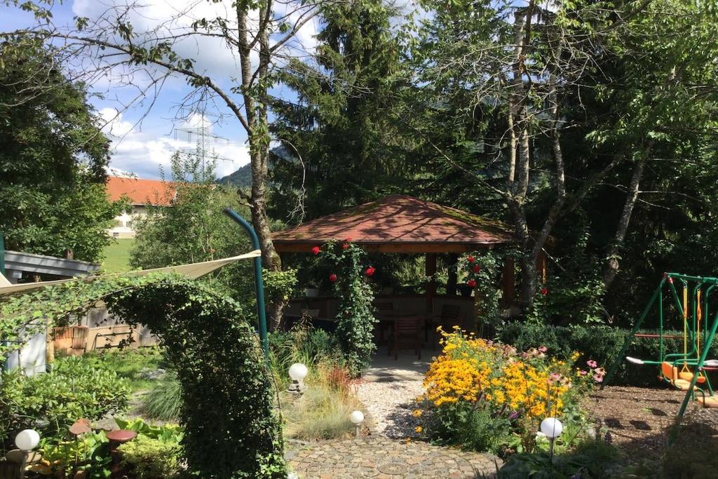 Feng Shui i hjertet av Allgäu-regionen, endeløse drømmer i vannsengene våre, og fordyp deg i en helt annen verden på vårt favorittsted, den kjærlige og kjærlig stelte hagen med magisk belysning om kvelden. Fullstendig ro og avslapning på terrassen vår i de komfortable stolene eller solsengene fra soloppgang til middag – og om ettermiddagen og kvelden i lysthuset vårt midt i hagen. Eller bli aktiv, nyt fjellene og tren skikkelig – med oss, det er ingen motsetning. Velkommen!