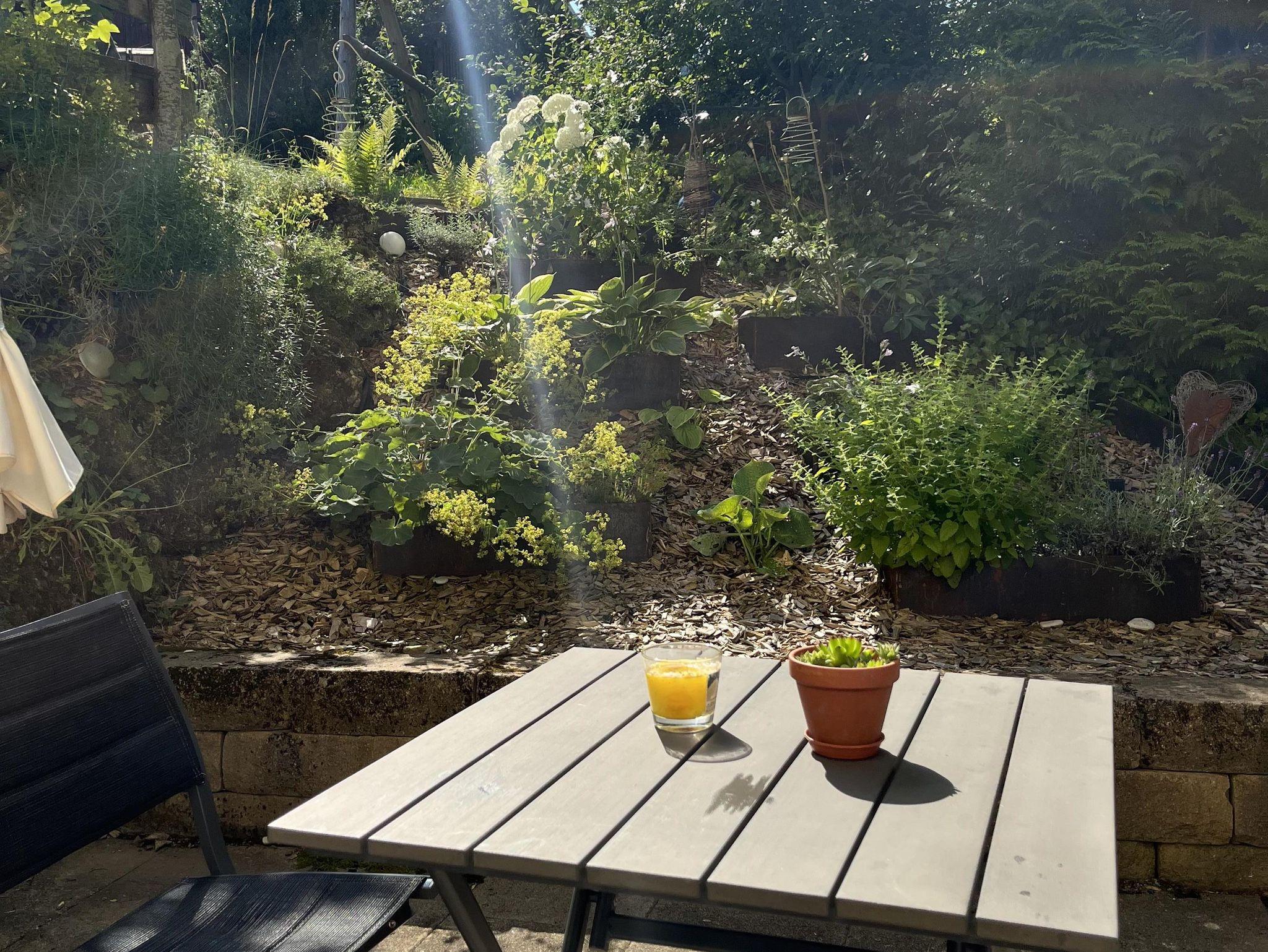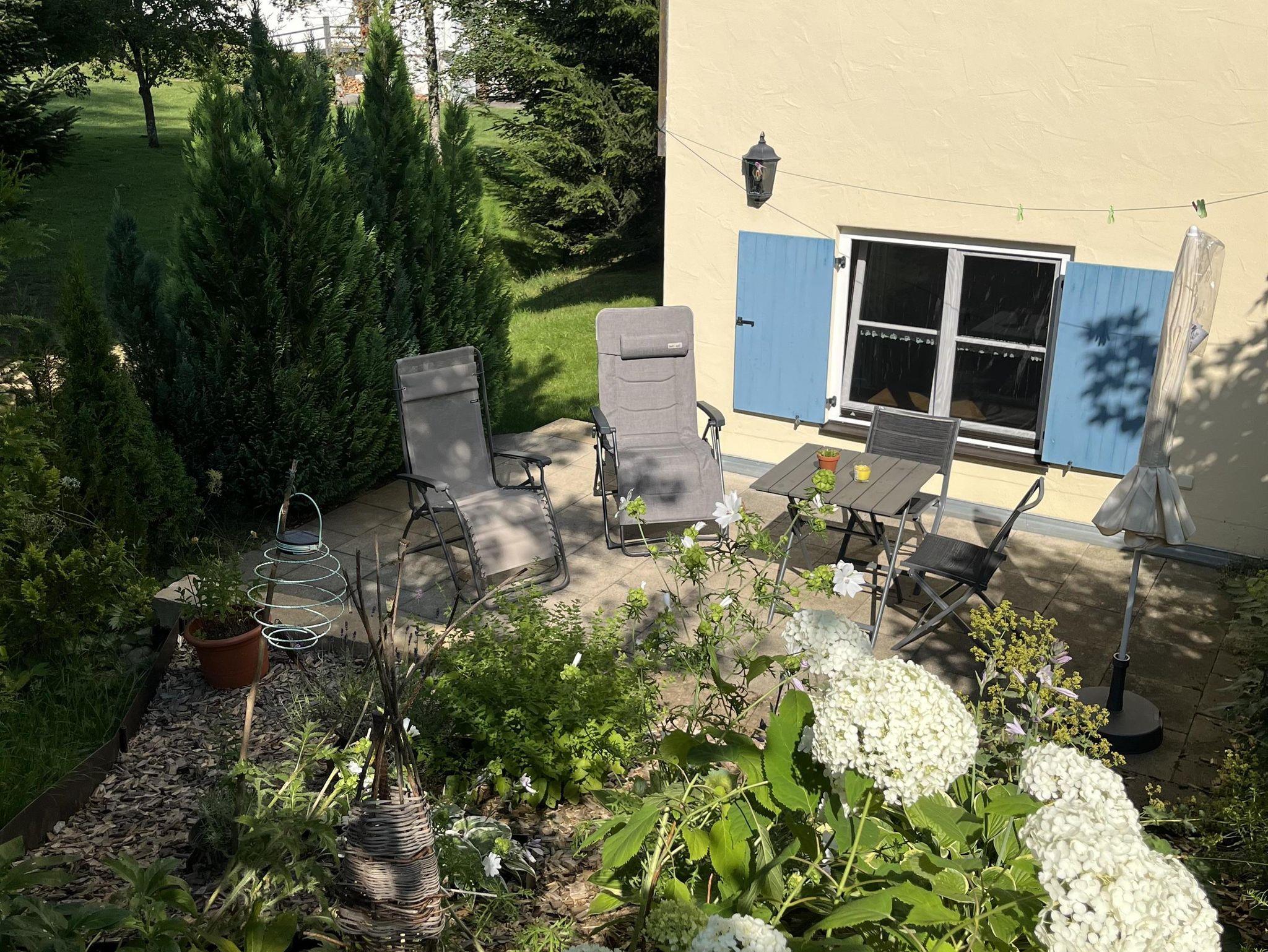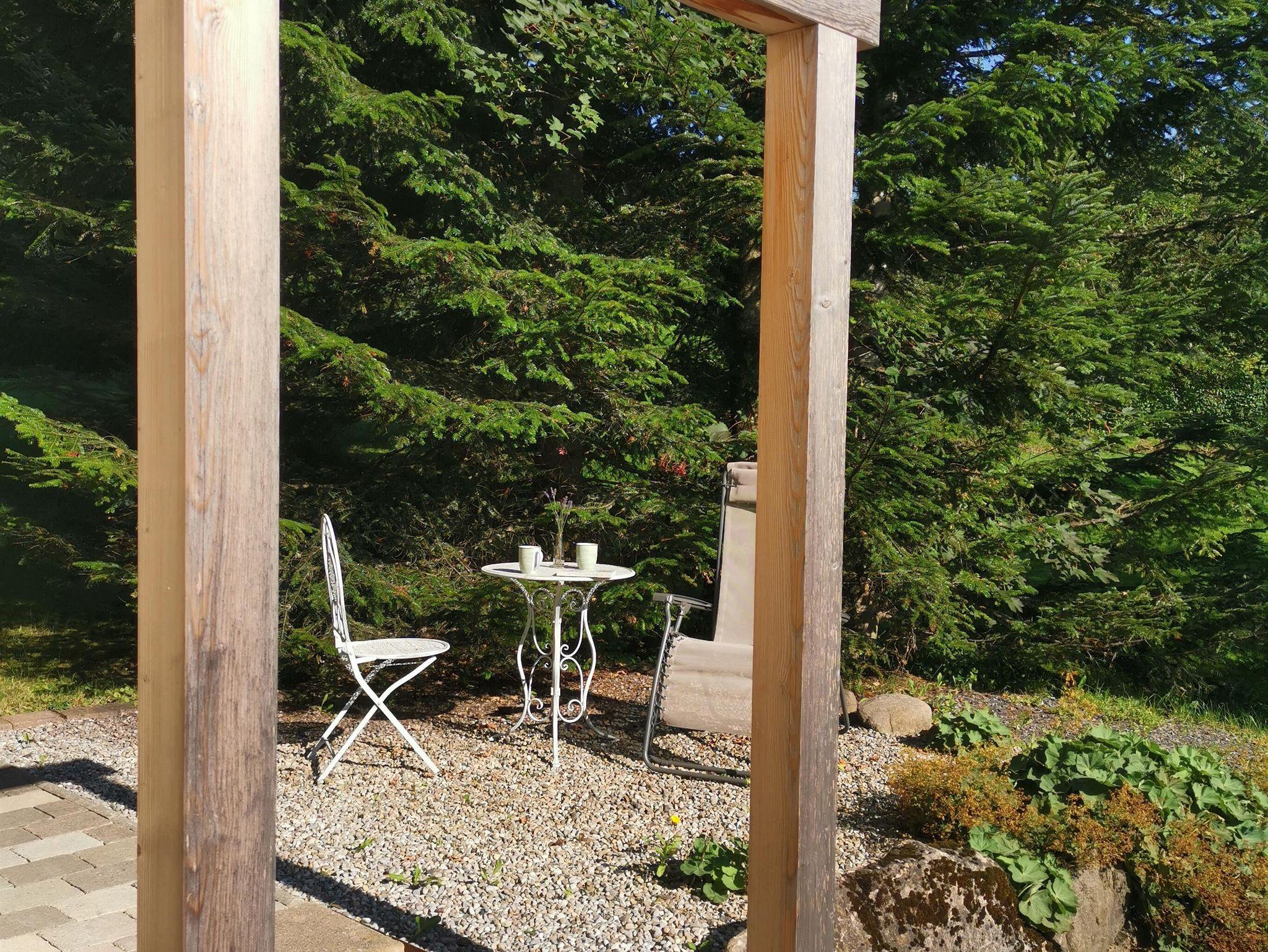 Der Lieblingsplatz verfügt über zwei Terrassen. Eine Frühstücksterrasse (Osten) und einer Hauptterrassse mit Nachmittag/Abendsonne.