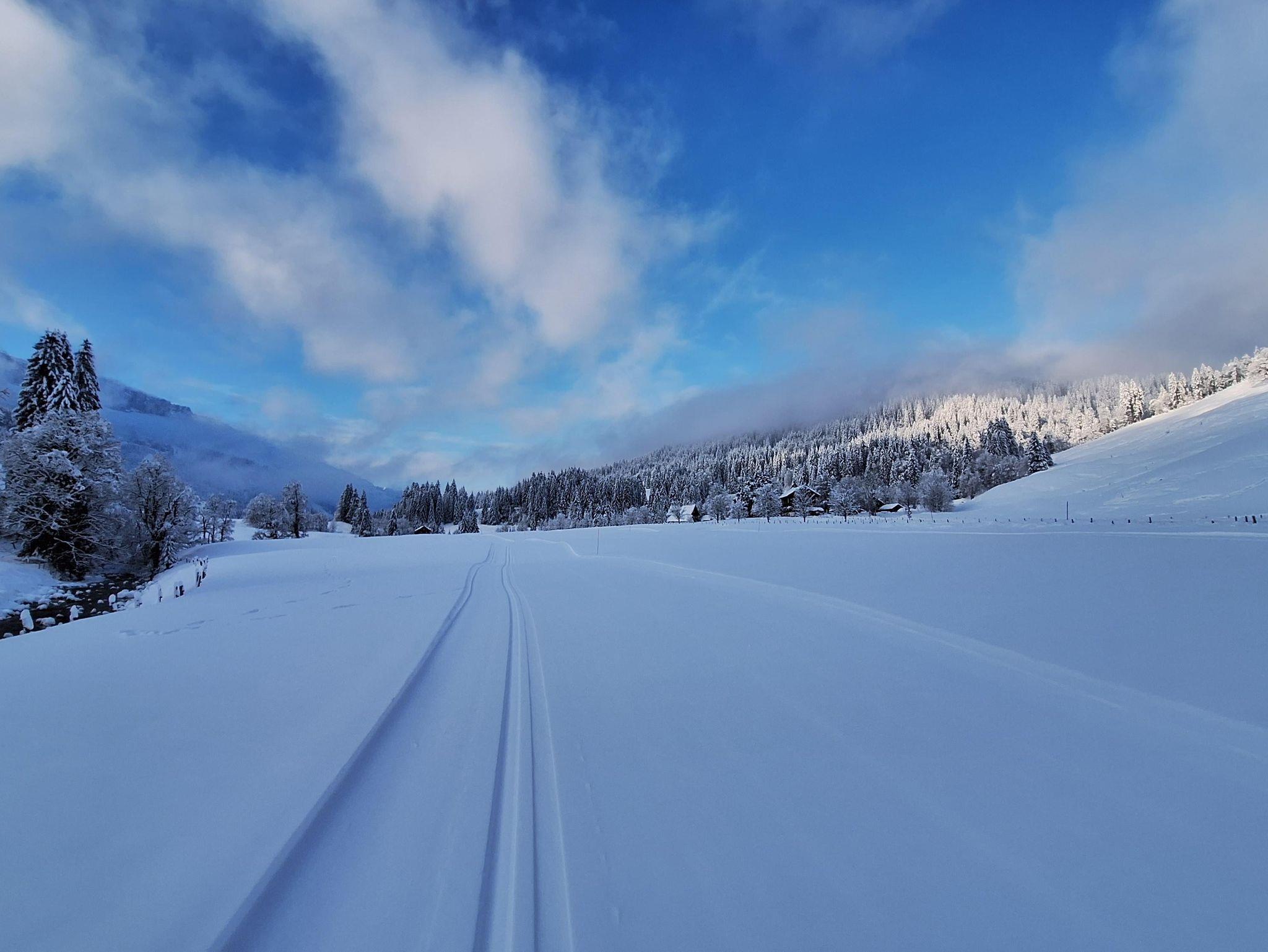 Skifahren und Langlaufen im Winter – die Loipe verläuft direkt am Haus