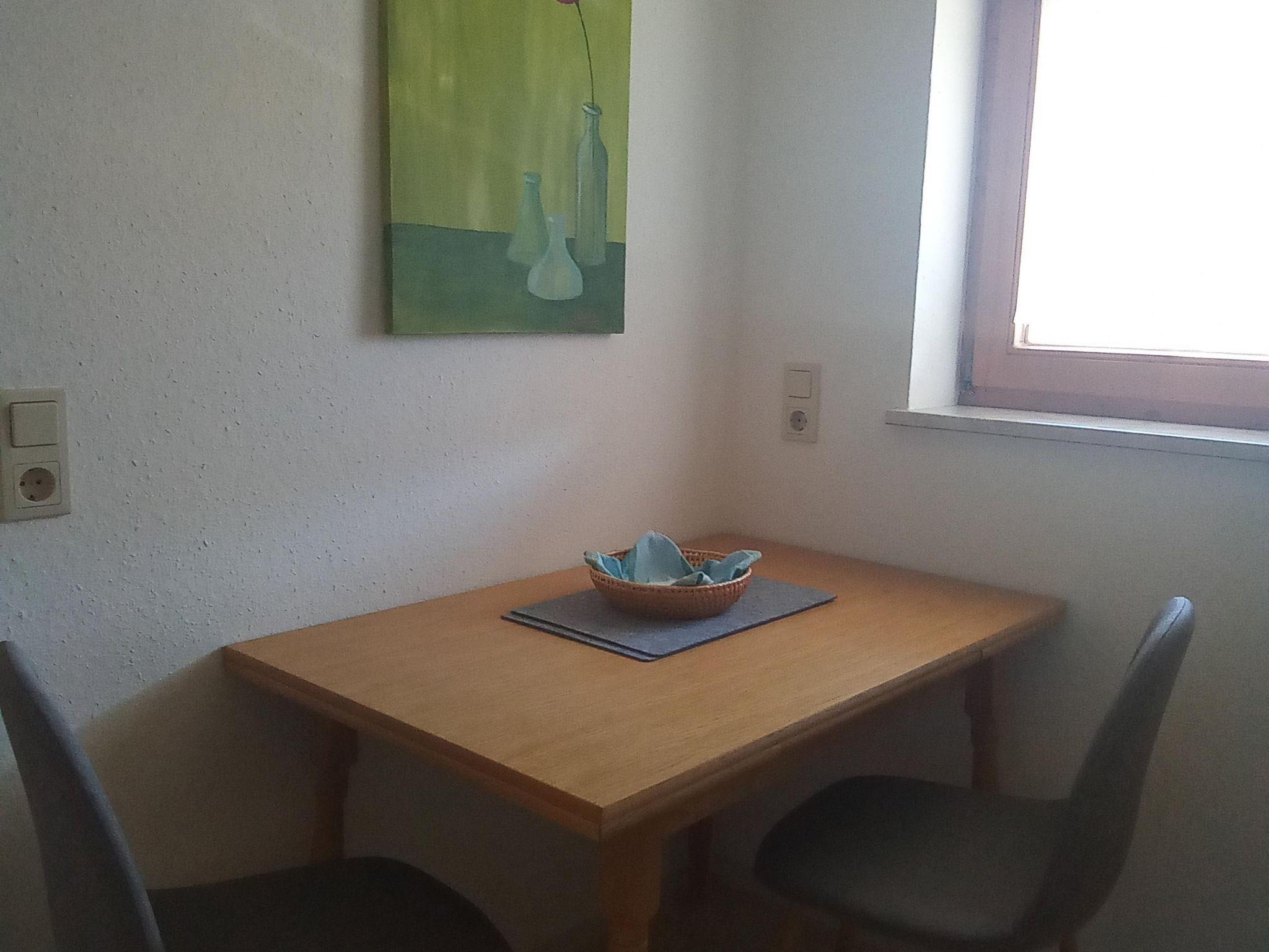 Die liebevoll gestaltete Wohnung verfügt über 1 Schlafzimmer mit Doppelbett und einem ausziehbaren Schlafsessel ( Bettwäsche inklusive ), einem gemütlichen Wohnzimmer mit Schlafsofa, TV und Radio sowie einem eigenen Zugang zu einem Süd/Ost Balkon, einer komplett ausgestatteten Küche mit Backofen, Kühlschrank mit Gefrierfach, Wasserkocher, Kaffeemaschine und Toaster und ein Bad mit Dusche, WC, Föhn und Handtücher inklusive. Um unsere Umwelt zu schonen stellen wir unseren Gästen einen Soda Stream bereit. WLAN/WiFi stellen wir kostenlos zur Verfügung. Ein Babybett sowie einen Kinderhochstuhl können wir auf Anfrage zur Verfügung stellen.