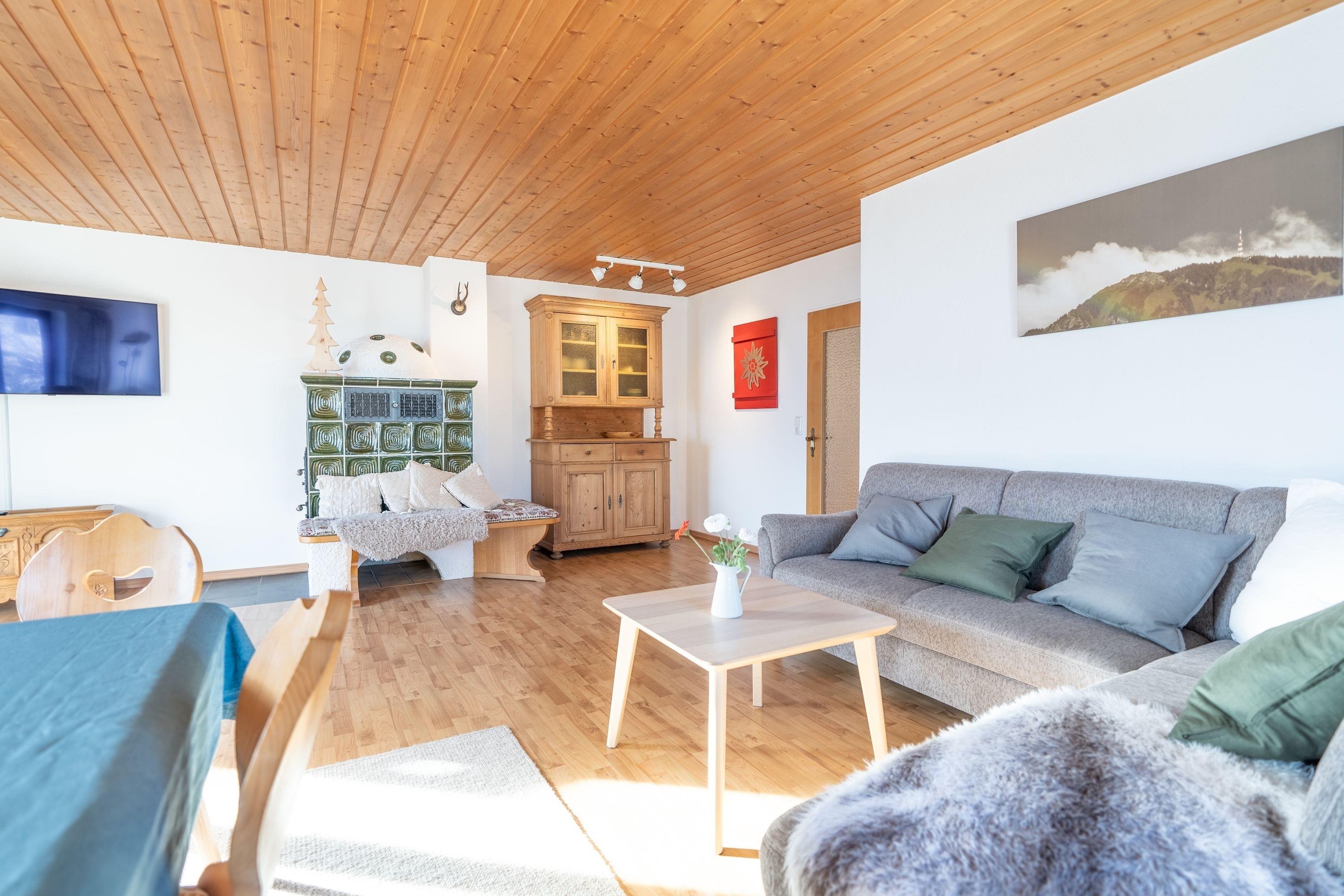 Verbringen Sie unvergessliche Tage in dieser Ferienwohnung mit hochwertiger und geschmackvoller Ausstattung. Die großzügigen 83 Quadratmeter bieten ausreichend Platz für Erholung und Entspannung. Genießen Sie die malerische Umgebung vom schönen Balkon aus, der einen atemberaubenden Blick auf den imposanten Grünten gewährt. Die über 100 Jahre alte Sennerei Untermaiselstein ist keine 200 m entfernt und ist sicherlich einen Besuch wert.