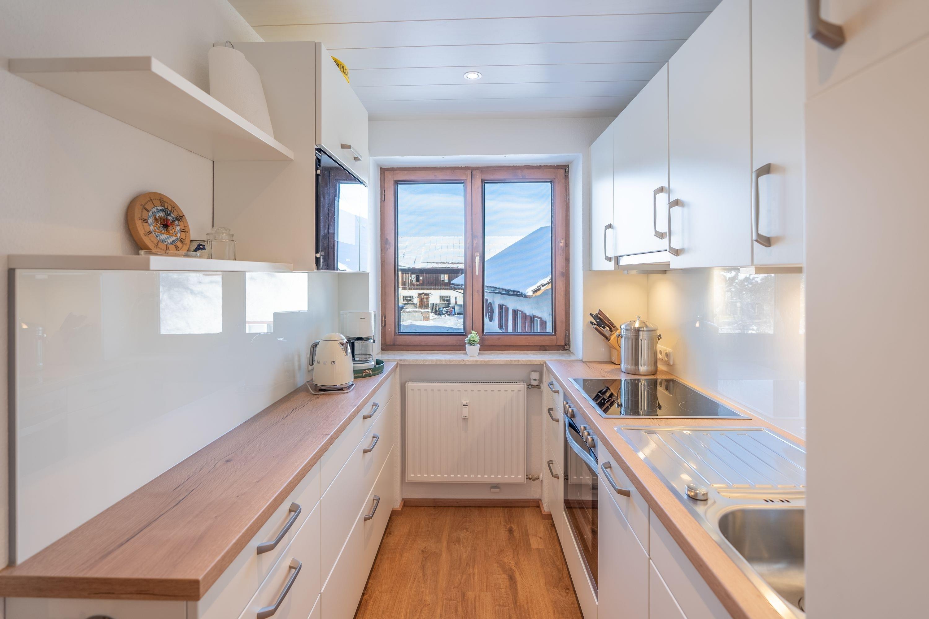 Das helle und gemütliche Wohnzimmer verfügt über einen Kachelofen, der für eine behagliche Atmosphäre an kühleren Abenden sorgt. Die moderne Küche ist bestens ausgestattet und lädt zum kochen Ihrer Lieblingsgerichte ein. Das großzügige und moderne Badezimmer begeistert mit einer begehbaren Dusche, die für besonderen Komfort sorgt. In Schlafzimmer 1 erwartet Sie ein gemütliches Doppelbett sowie ein praktisches Stockbett, ideal für Familien oder Gruppen. Das Schlafzimmer 2 ist mit zwei Einzelbetten und einem Kleiderschrank ausgestattet. Im Flur finden Sie weitere Schränke, um all Ihre Habseligkeiten ordentlich zu verstauen.