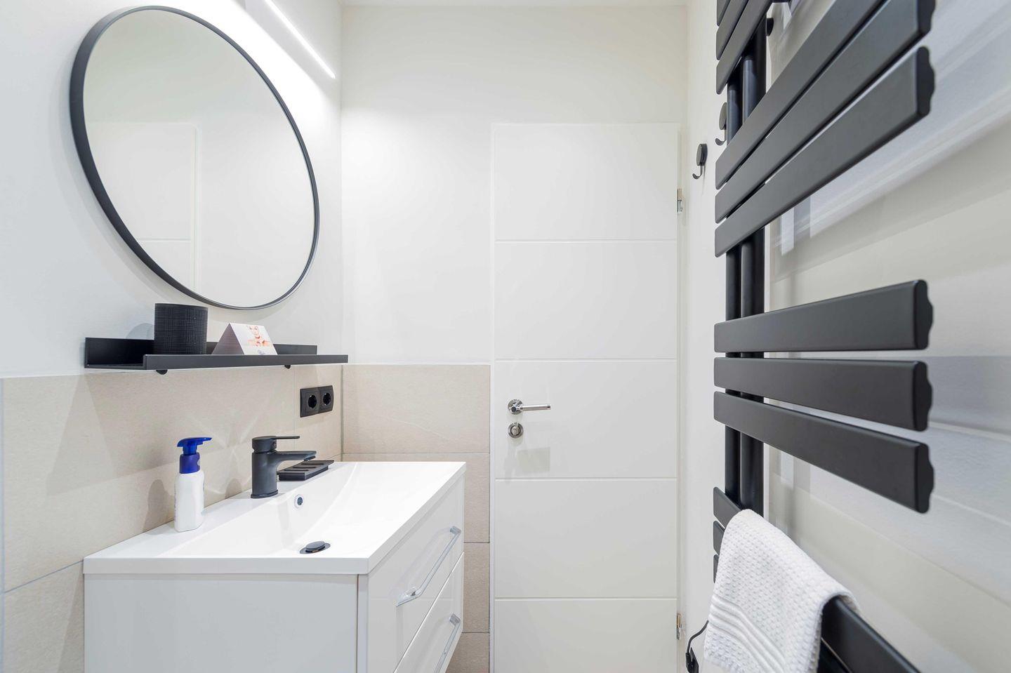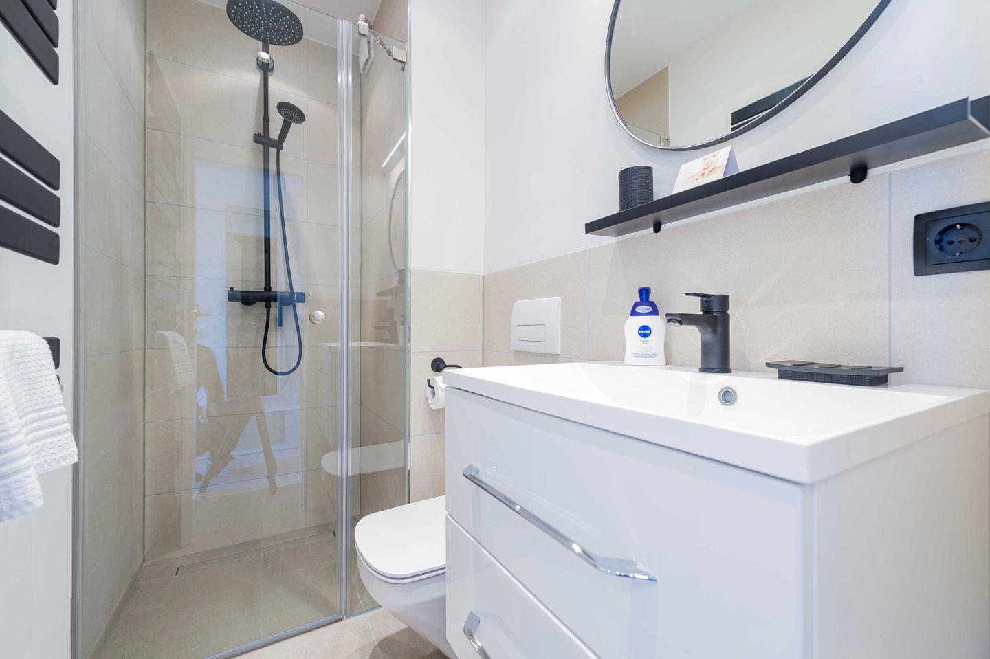 Das Badezimmer mit bodengleicher Regendusche und Fußbodenheizung wird Sie begeistern.