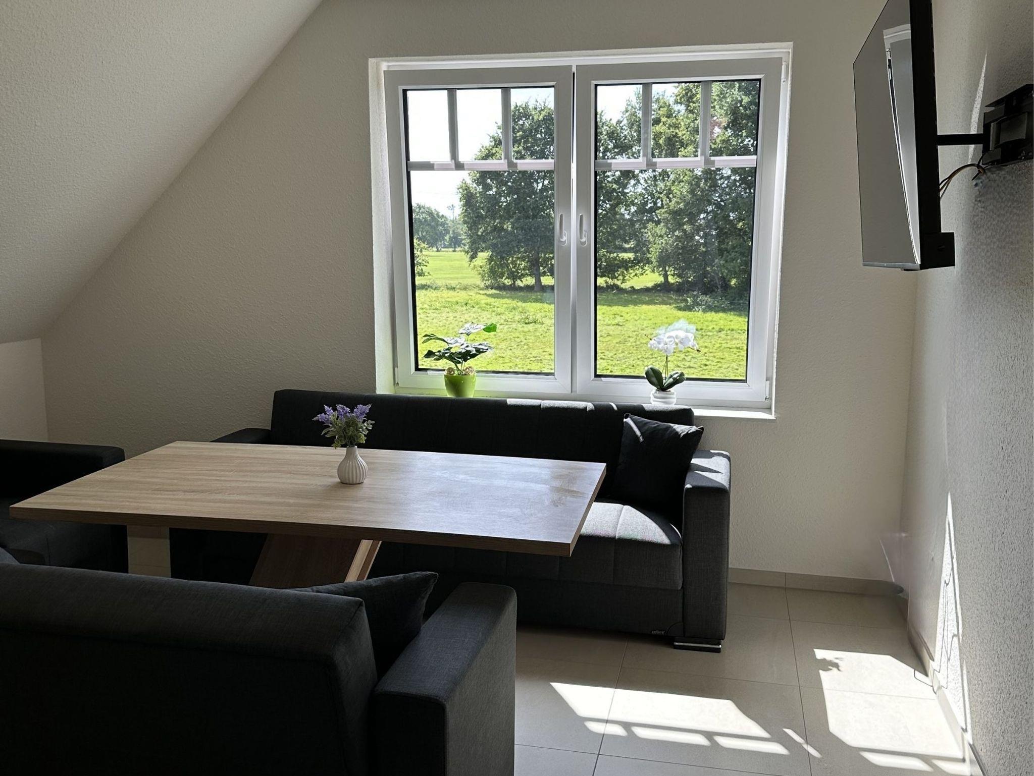In unserem neugebauten Ferienhaus mit zwei Wohneinheiten können Sie mit bis zu 8 Erwachsenen Ihren Urlaub verbringen. Die Doppelhaushälfte hat einen gemeinsamen Eingang mit separaten Wohnungseingangstüren.