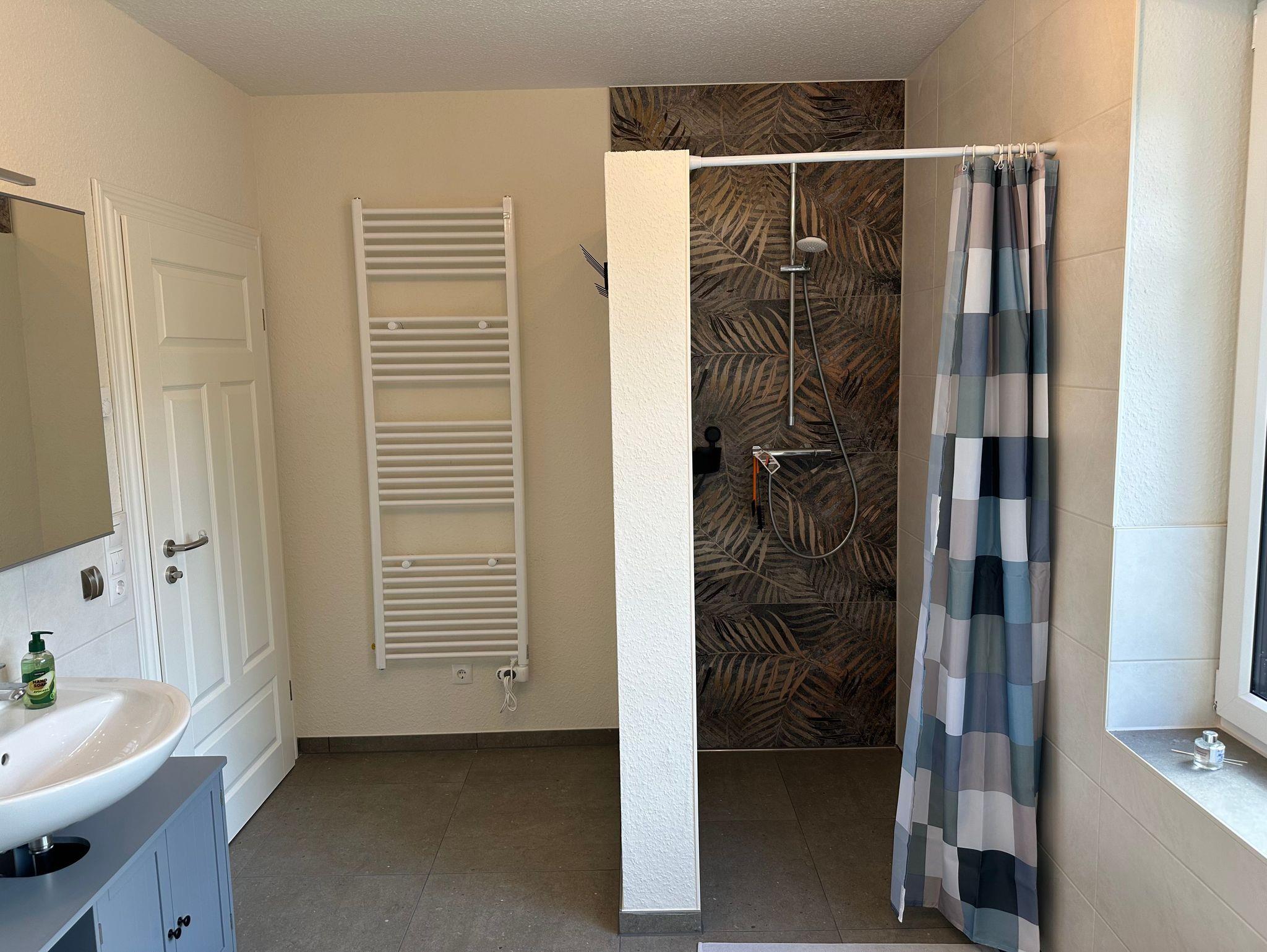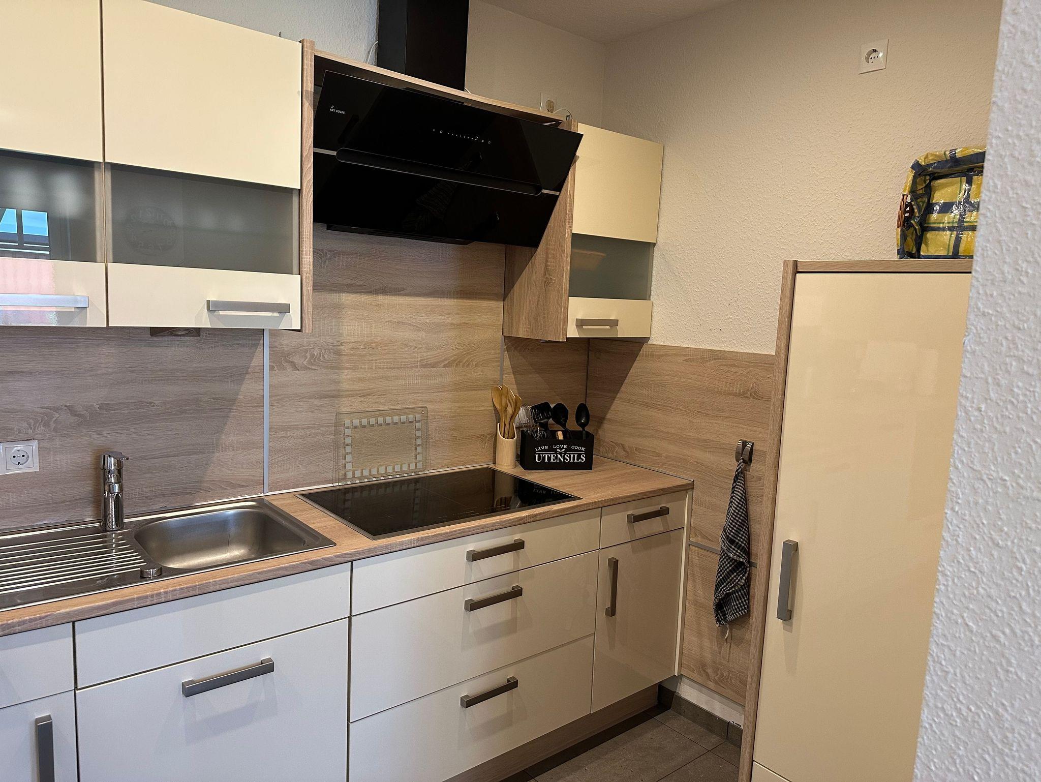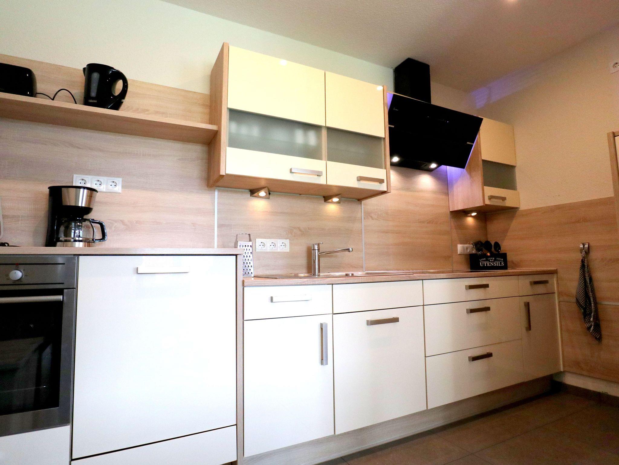 In der Oberwohnung stehen Ihnen zwei Doppelzimmer (Doppelbetten je 1,80 m × 2,00 m/2 Matratzen), eine Wohnküche mit einer Schlafcouch (1,00 m × 1,85 m) und ein Bad mit Badewanne und einer ebenerdigen Dusche zur Verfügung.