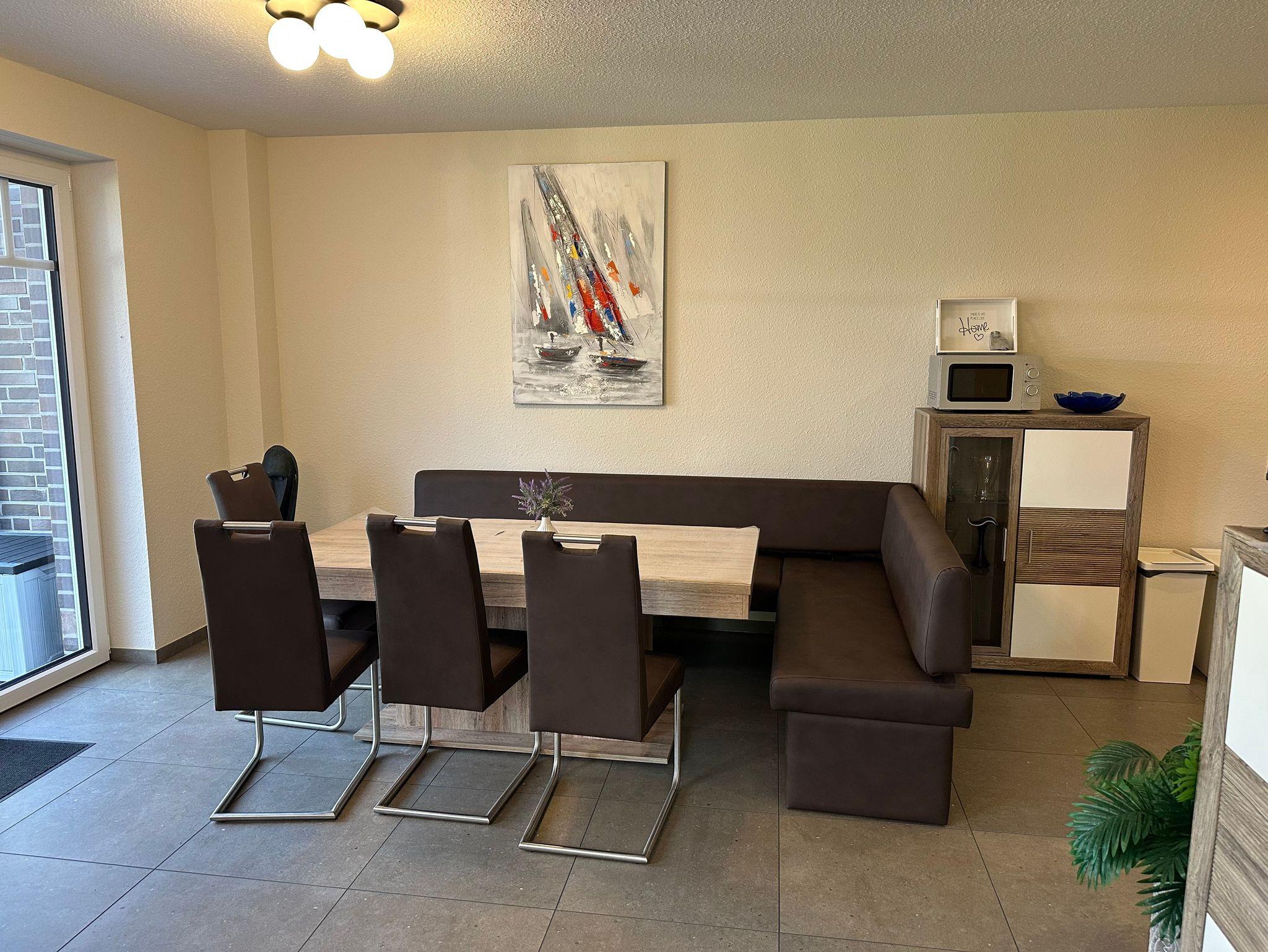 In unserem neugebauten Ferienhaus mit zwei Wohneinheiten können Sie mit bis zu 8 Erwachsenen Ihren Urlaub verbringen. Die Doppelhaushälfte hat einen gemeinsamen Eingang mit separaten Wohnungseingangstüren.