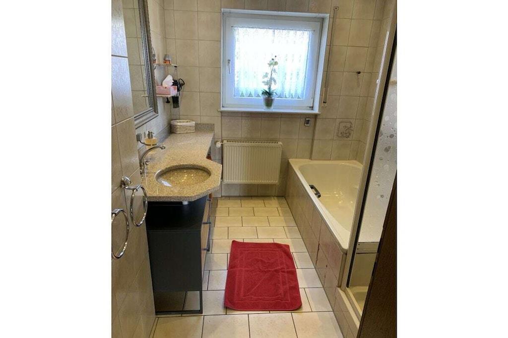 Ferieleiligheten på 60 kvm ligger i første etasje og har plass til 2–3 personer. Den har stue, soverom med TV, kjøkken, bad med dusj og badekar og gjestetoalett. Stereoanlegg, CD-radio, LCD-TV, Blu-ray-spiller, filmer og safe er tilgjengelig. 10 000 Mbit DSL Wi-Fi er tilgjengelig. Vaskemaskin og tørketrommel er tilgjengelig. Kjøkkenet er utstyrt med servise, mikrobølgeovn, oppvaskmaskin, komfyr med keramisk koketopp og et stort kjøleskap med fryser. Du kan slappe av på balkongen med stoler og bord eller på plenen med grill. Leiligheten har sentralvarme, gulvvarme og kakkelovn. En garasje med elektrisk port og en ekstra parkeringsplass er tilgjengelig.