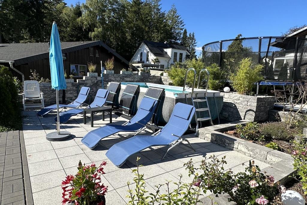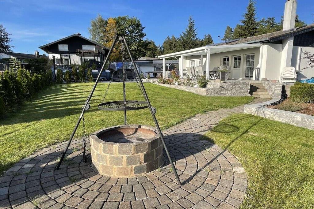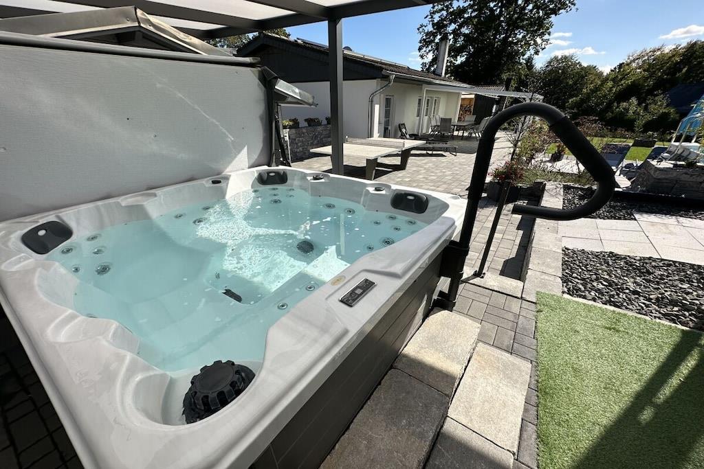 135 kvm feriehus med 1200 kvm tomt. Plass til opptil 6-8 personer på ett plan uten trapper. Den 7. og 8. gjesten kan bruke sovesofaen i stuen. Oppvarmet boblebad i hagen året rundt. 4m x 2m basseng tilgjengelig i hagen fra april til september. Sentral ladestasjon for elektrisk bruk tilgjengelig. Klimaanlegg, peis, 5 Smart-TV-er, 200 Mbps Wi-Fi internett, Blu-ray-spiller og musikkanlegg, safe. Luksuriøs badstue med infusjonsovn og infrarød varmeovn. Kjøkken med benkeplate i granitt, kjøleskap/fryser, 4-soners komfyr med induksjonstopp, oppvaskmaskin og mikrobølgeovn. 4 soverom med Smart-TV-er og elektriske lamellbunner. 2 bad med toalett og dusj. Vaskemaskin, tørketrommel og gass sentralvarme. Terrasse med sitteplasser og grill. Trampoline, bordtennisbord og et oppvarmet boblebad i hagen Parkering for 5 kjøretøy