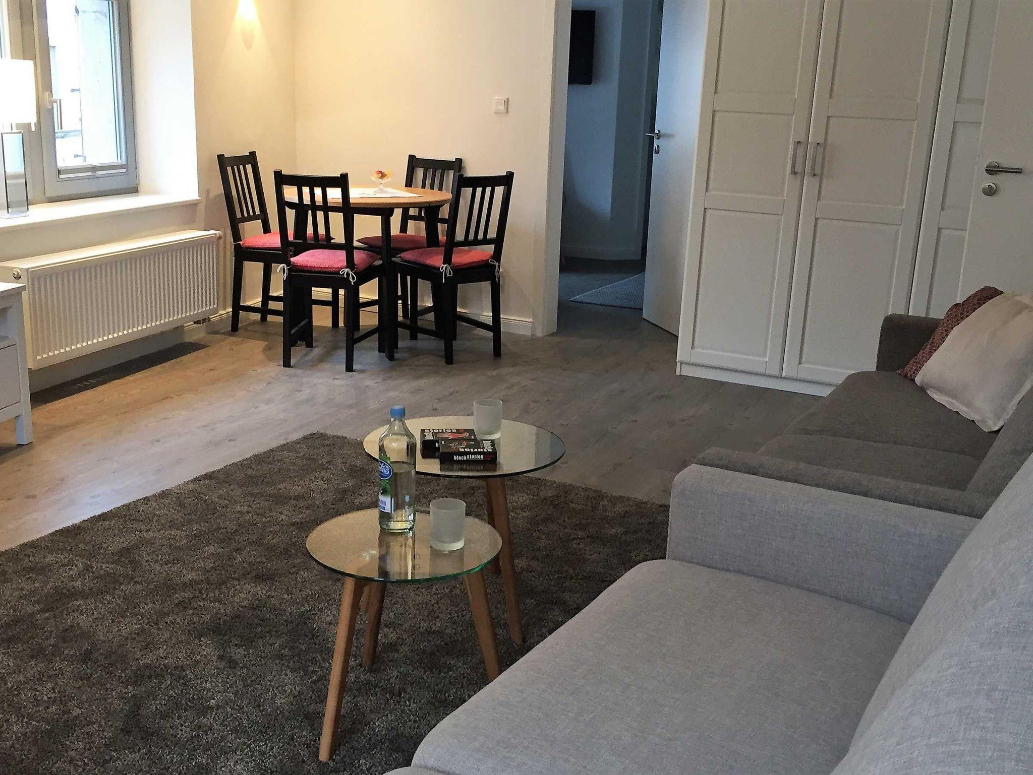 Herzlich Willkommen! Wir präsentieren Ihnen hier unsere Ferienwohnungen Anna und Johan direkt am Marktplatz von Rheine. Bei gleichzeitiger Buchung beider Wohnungen finden hier bis zu 12 Personen ausreichend Platz auf großzügigen rund 170 qm Wohnfläche. Die Wohnungen liegen direkt nebeneinander im 1. Obergeschoss eines frisch modernisierten Bürgerhauses aus dem Jahr 1649. Beide Wohnungen verfügen über neue Bäder, WCs und Einbauküchen, die keine Wünsche offen lassen. Für Gäste mit Handicap steht nach Absprache ein Aufzug im Treppenhaus zur Verfügung. Fahrräder können im abschließbaren Innenhof sicher und wettergeschützt abgestellt werden. Die damaligen Erbauer Anna von Beesten und Johan Lethmate stehen mit ihren Vornamen Pate für die beiden Wohnungen. Im Jahr 2019 hinzugekommen ist die Wohnung Scalina (50 qm) für 2-4 Personen, die am Innenhof liegt.