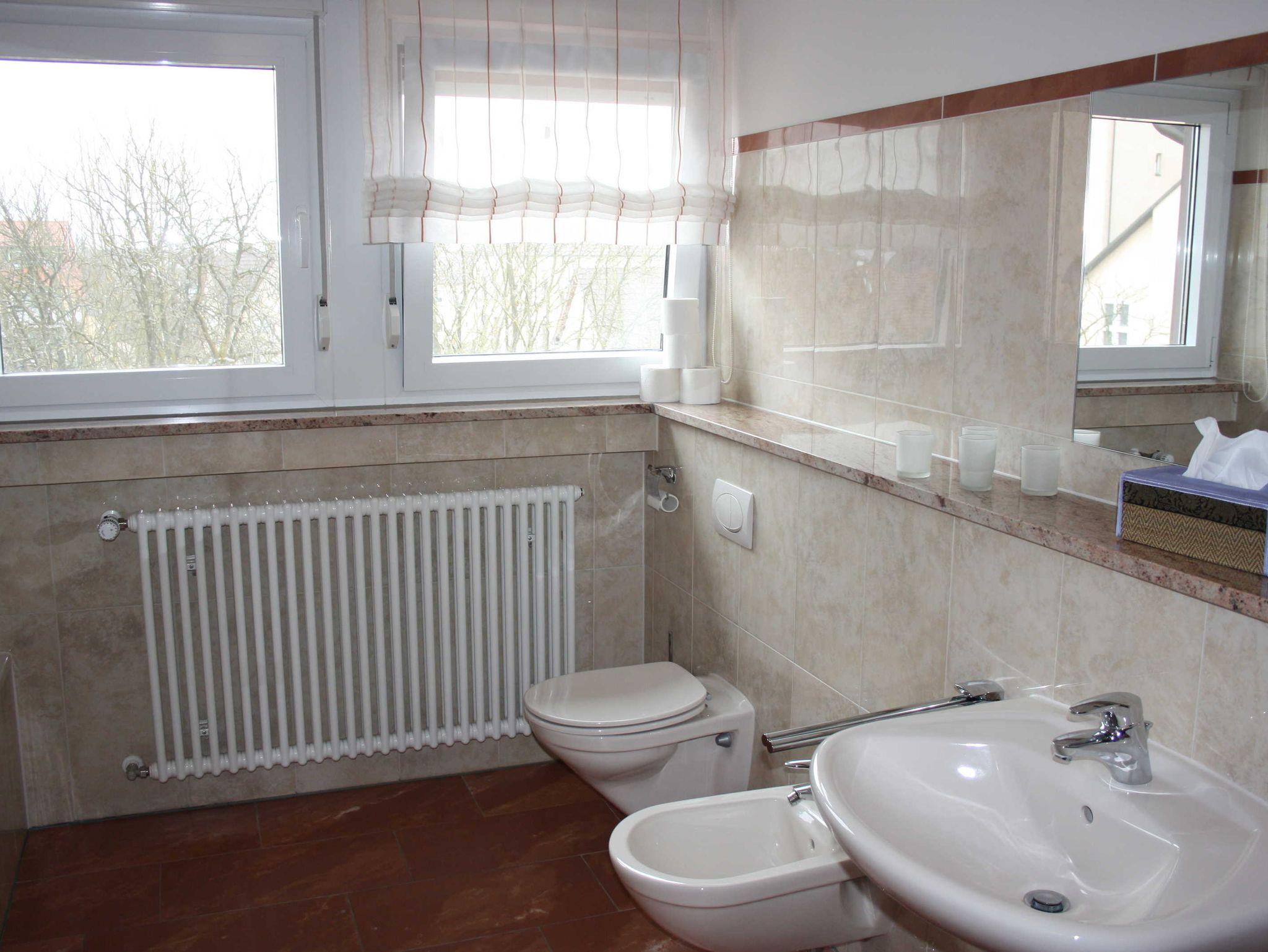• Bad: Dusche; Badewanne; Bidet; Waschbecken; WC; Badetücher; Fön; Seifenspender; Becher