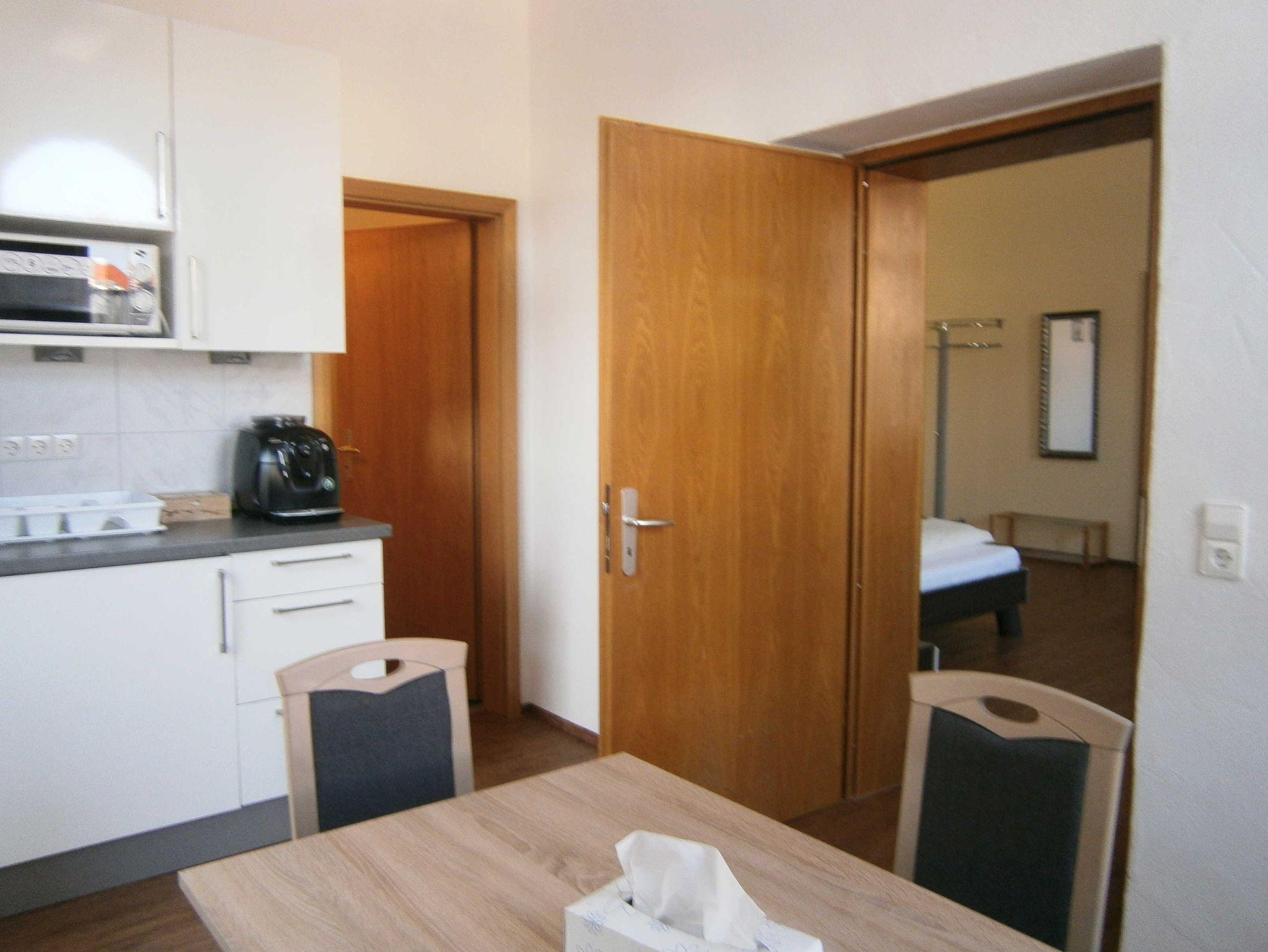 • Küche: Küchentisch; Kochfelder; Kaffeemaschine; Kühlschrank; Mikrowelle; Wasserkocher; Toaster; Spülbecken; Handtücher; Geschirr und Besteck
