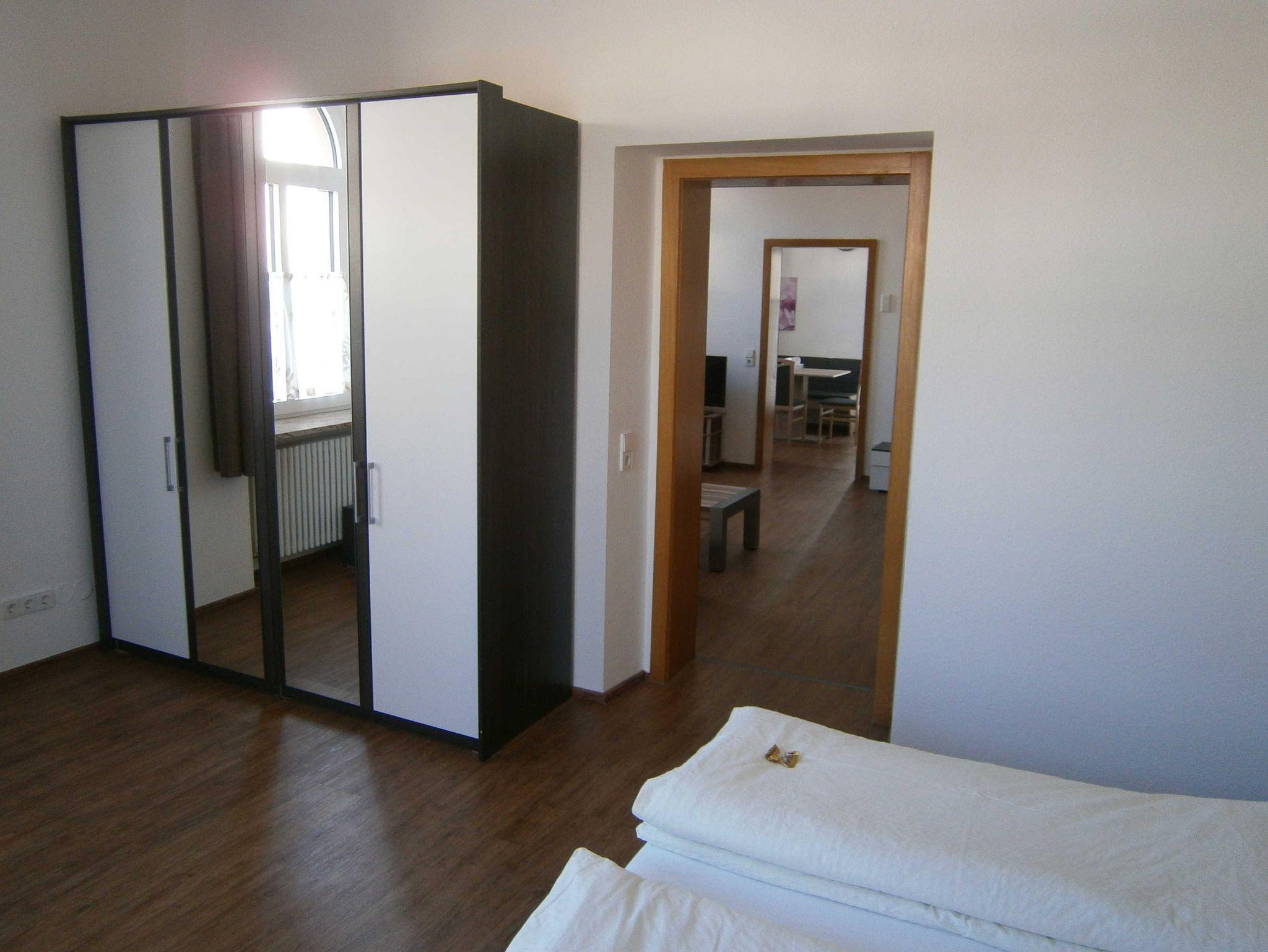 • Schafzimmer 1: Doppel- und Einzelbett; Bettwäsche; Kleiderschrank; Nachttische mit Lampen