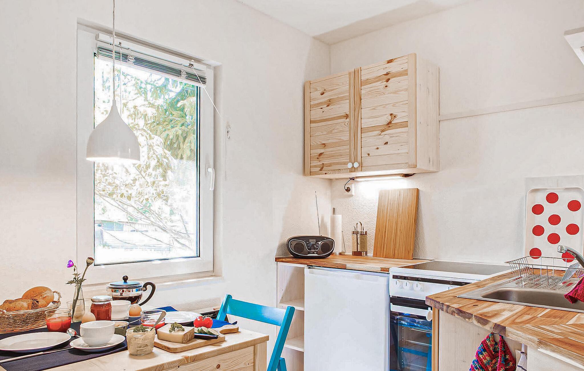 Den ca. 35 kvadratmeter store, røykfrie bungalowen er utstyrt med et kombinert oppholds- og soveområde (sofa, to enkeltsenger, flatskjerm-TV, radio), kjøkken (elektrisk komfyr med stekeovn, kjøleskap med fryserom, spiseplass, diverse småting), bad (dusj, kjøkkenutstyr). Kjøkkenutstyr), bad (dusj/toalett, elektrisk håndklevarmer/oppvarming, hårføner) samt elektrisk oppvarming og insektsnett på vinduene. Det er også en terrasse, et sykkeloppbevaringsrom, parkeringsplasser og gratis WLAN.