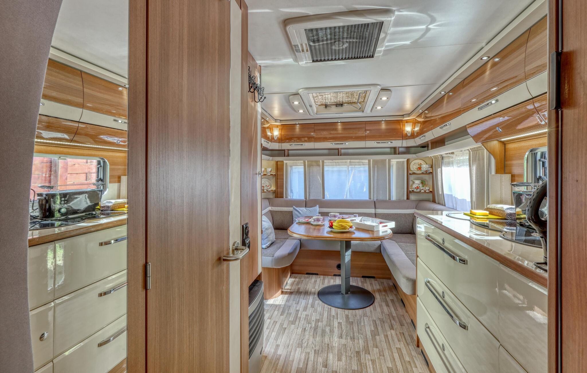 Den ca. 14 m² store, røykfrie campingvognen er utstyrt med sittegruppe, flatskjerm-TV, radio, kjøkkenkrok (propangasskomfyr, kjøleskap med fryser, kaffetrakter, vannkoker), en sovekabin (2 enkeltsenger) og et lite toalett og kan varmes opp med propangass. Det er et separat bad med dusj og toalett i et eget uthus. Det er også en liten sittegruppe, solsenger, grill, sykkeloppbevaringsrom, fiskerenseplass og parkeringsplass (foran eiendommen). En robåt (også med elektrisk motor) og sykler kan leies etter avtale mot en avgift.