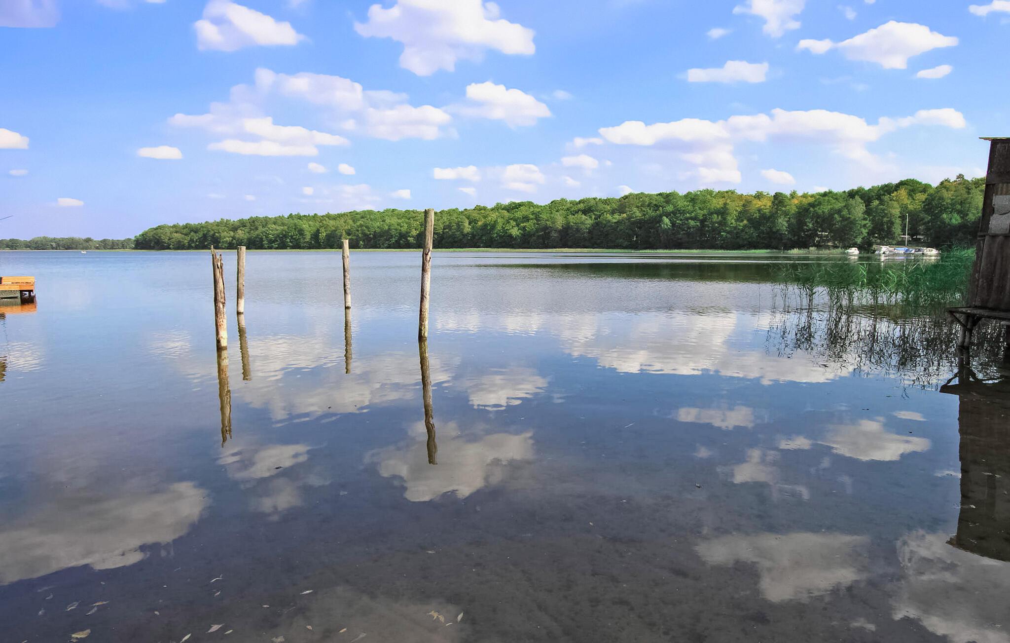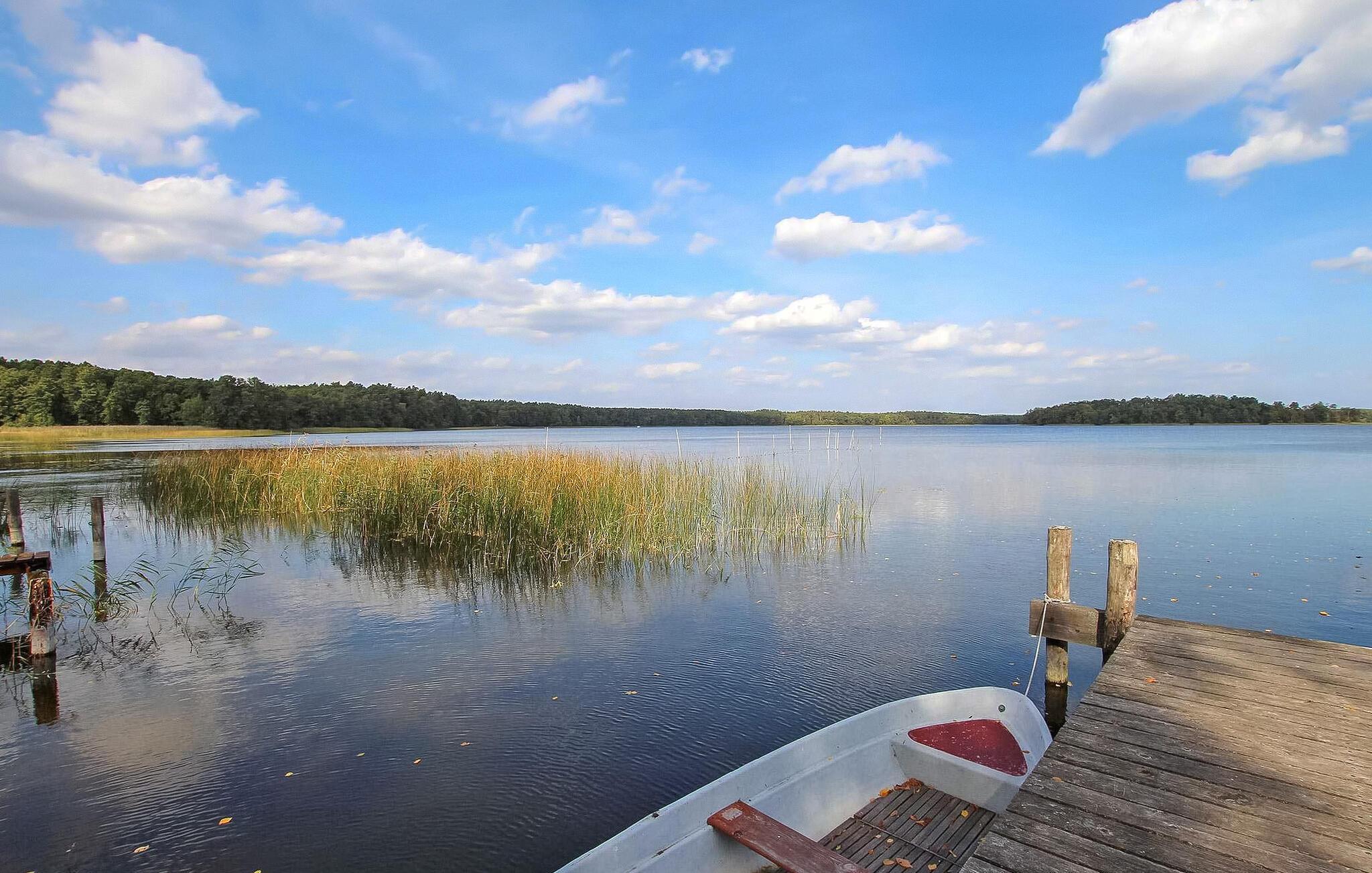 Dette av tre feriehus ligger på en egen, 3000 kvadratmeter stor fritidseiendom med rolig beliggenhet i utkanten av byen og skogen i Warenthin. Kun en uberørt våtmarksbiotop skiller eiendommen fra Rheinsberg-sjøen. Privat brygge med robåt per feriehus (5 EUR/døgn), en liten badeplass og restauranter ligger innenfor en radius på 500 meter. Feriehuset er utstyrt med: Stue (stoppede møbler med sovefunksjon, TV, radio, peis), 1 soverom (dobbeltseng 140x200), 1 lite barnerom (sovesofa), kjøkkenkrok i åpen planløsning (elektrisk komfyr, kjøleskap med frysedel, diverse kjøkkenutstyr), dusj/WC, elektrisk oppvarming ved behov. Til disposisjon: overbygd terrasse med sittegruppe, grill, 2 enkle sykler (barnesykler tilgjengelig). (på forespørsel), liten lekeplass, bålplass, ved mot betaling, parkeringsplass og sykkeloppbevaring. Eiendommen er inngjerdet. Sluttrengjøring og vann er inkludert i totalprisen. Betales på stedet: Energi etter forbruk, turistskatt, ved ved behov, sengetøy og håndklær kan medbringes eller leies. Maksimalt 2 hunder opp til 40 cm er tillatt i denne ferieboligen. Husdyr er ikke tillatt i juli og august eller på helligdager.