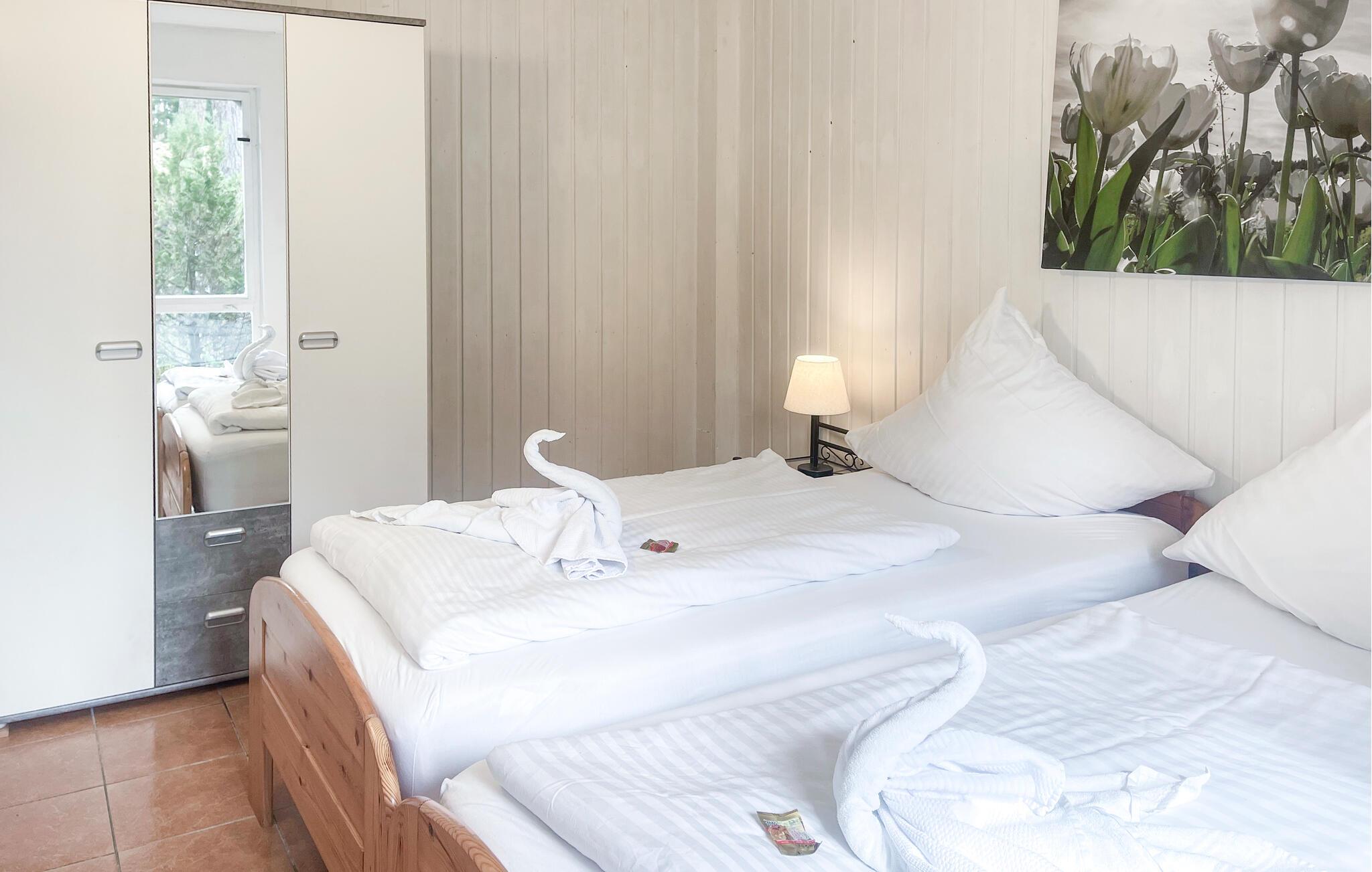 Frokost og rundstykkeservice er tilgjengelig på forespørsel mot et gebyr. (Totalprisen inkluderer sluttrengjøring, sengetøy, håndklær og vann. Betales på stedet: Spa-avgift, strøm etter forbruk, om ønskelig: frokost 13,50 EUR p.p. (bestill 1 dag i forveien!), robåt 15 EUR, motorbåt 95 EUR, kajakk eller kano 25 EUR. Kjæledyr er tillatt på denne eiendommen.