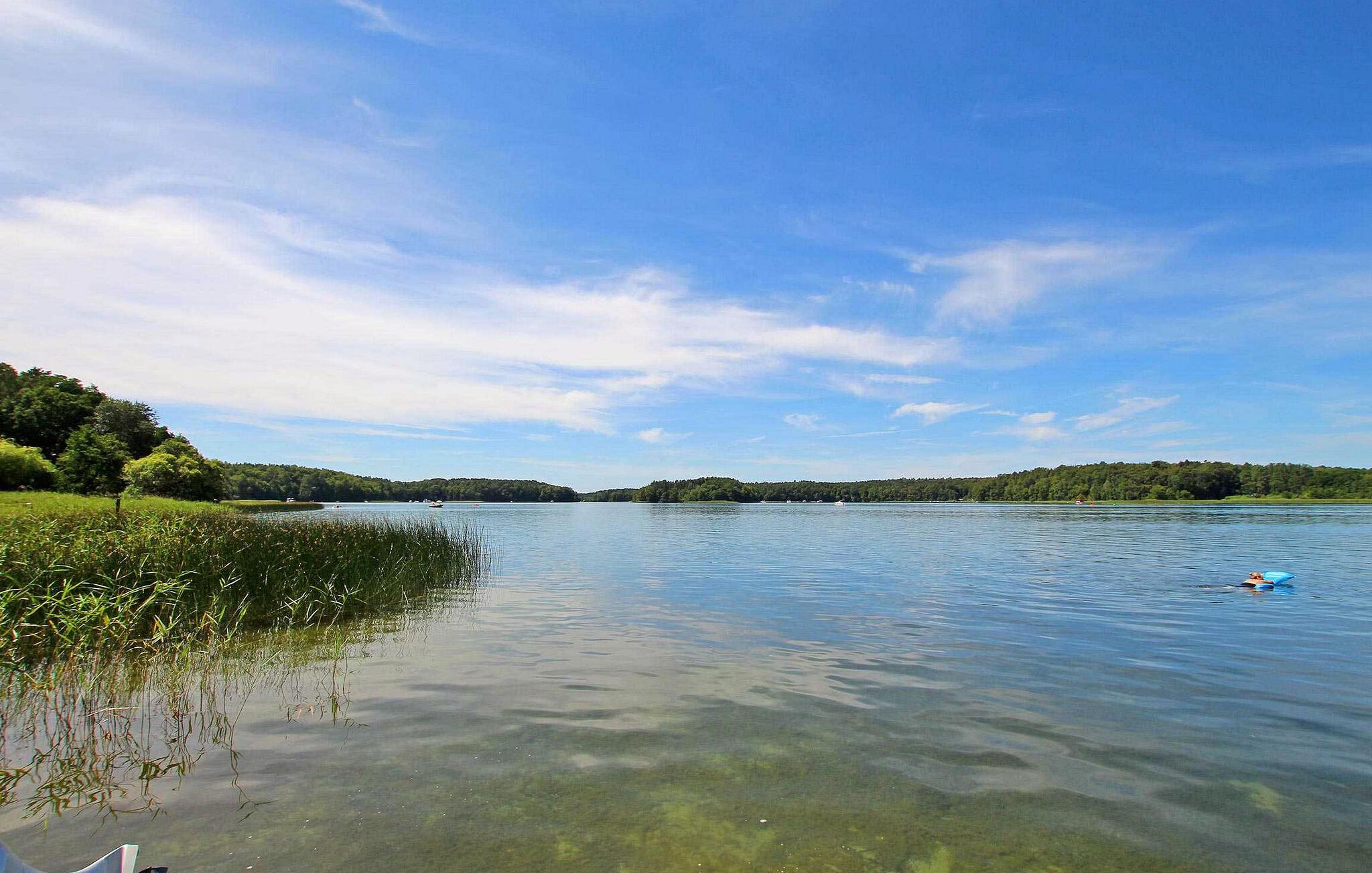 Direkte ved Zootzensee-sjøen - med egen adkomst til innsjøen - utenfor landsbyen, ligger det 4 feriehus i forskjellige størrelser for til sammen opptil 15 personer på eierens ca. 3000 m² store bolig- og fritidseiendom. Hele komplekset er designet for å være økologisk/biologisk bærekraftig og har eget biologisk renseanlegg, egen solenergiforsyning og egen brønn. (Vannet er egnet til barnemat.) Det finnes en restaurant i Zechlinerhütte (ca. 1,5 km), shoppingmuligheter og andre serveringssteder i Rheinsberg (ca. 7 km).