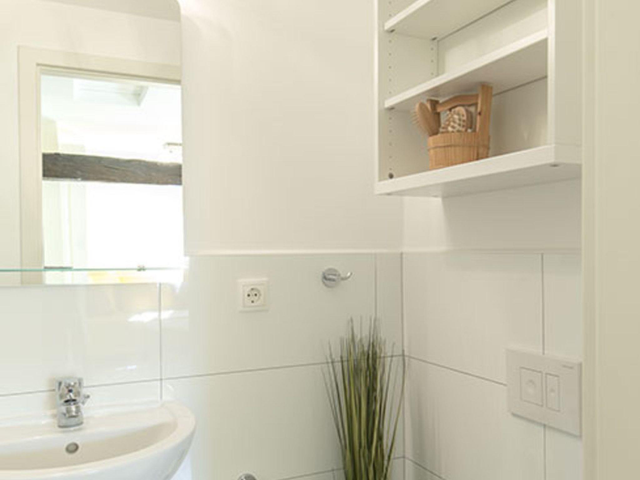 • Das Duschbad ist mit Waschtisch und einer geräumigen Dusche ausgestattet.
