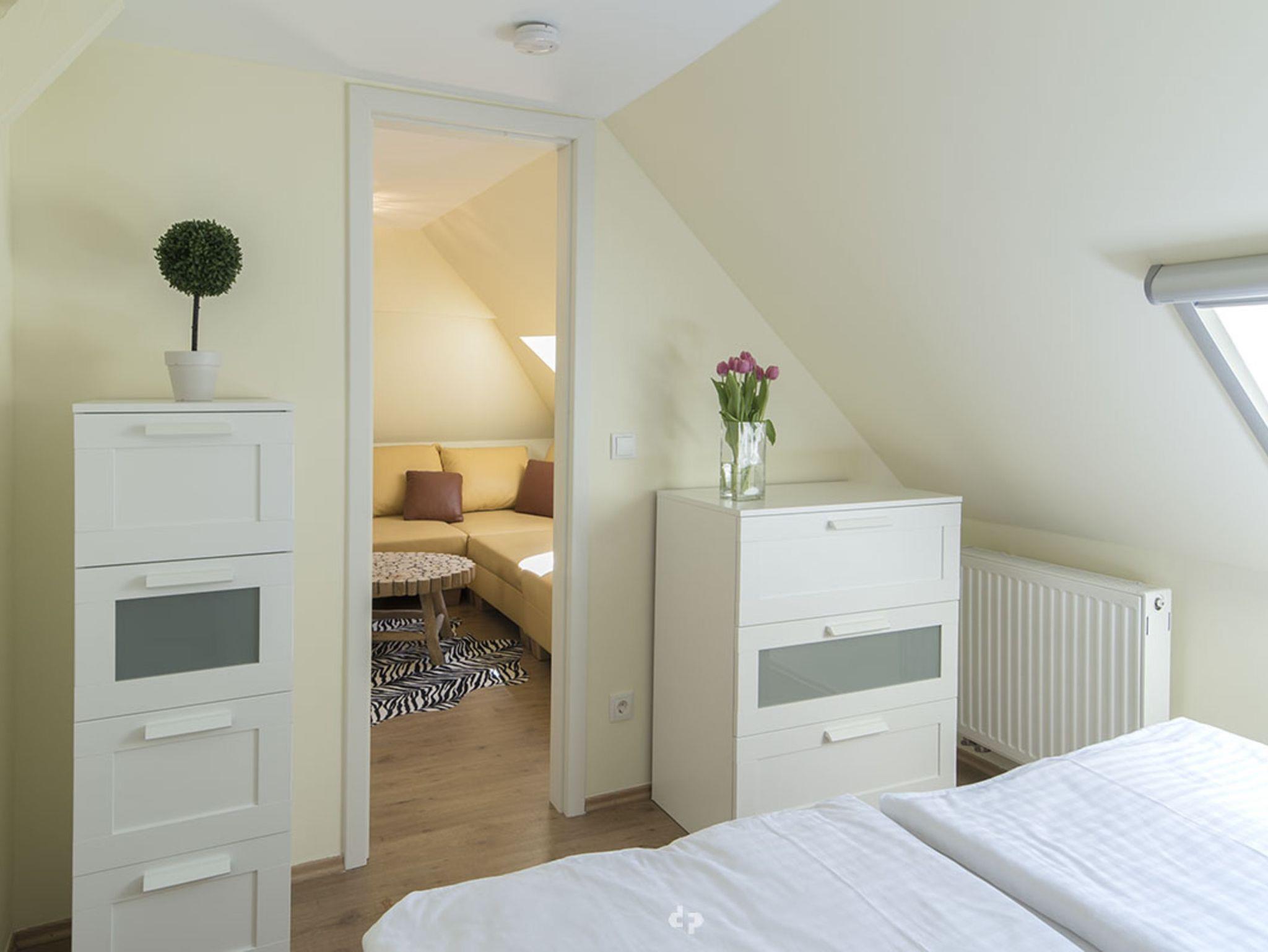 • Im zweiten Schlafzimmer stehen Ihnen ein Boxspringbett mit hochwertiger Matratze (180 x 200) sowie mehrere Kommoden zur Verfügung.