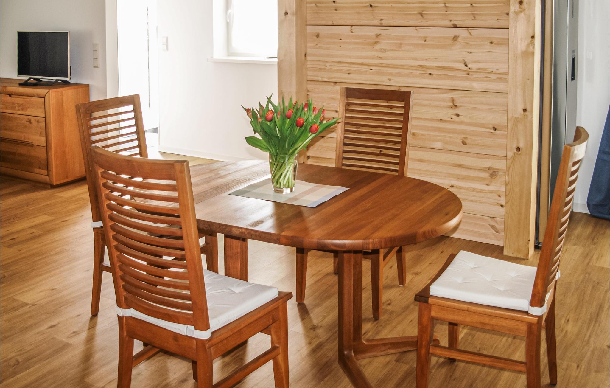 Denne innbydende ferieleiligheten ligger midt i hagen på den tidligere gården. Den imponerer med klare strukturer, et stort sentralt kjøkken-stue og moderne møbler i varme farger. Gulvvarme, et barrierefritt bad og et meget velutstyrt kjøkken med direkte utgang til den store terrassen gjør ferien til en uforglemmelig opplevelse. En stor grillplass med bålplass og kullgrill er tilgjengelig for å avrunde de varme sommerkveldene.