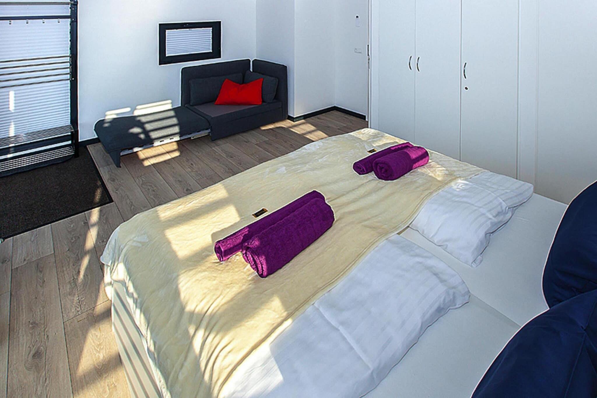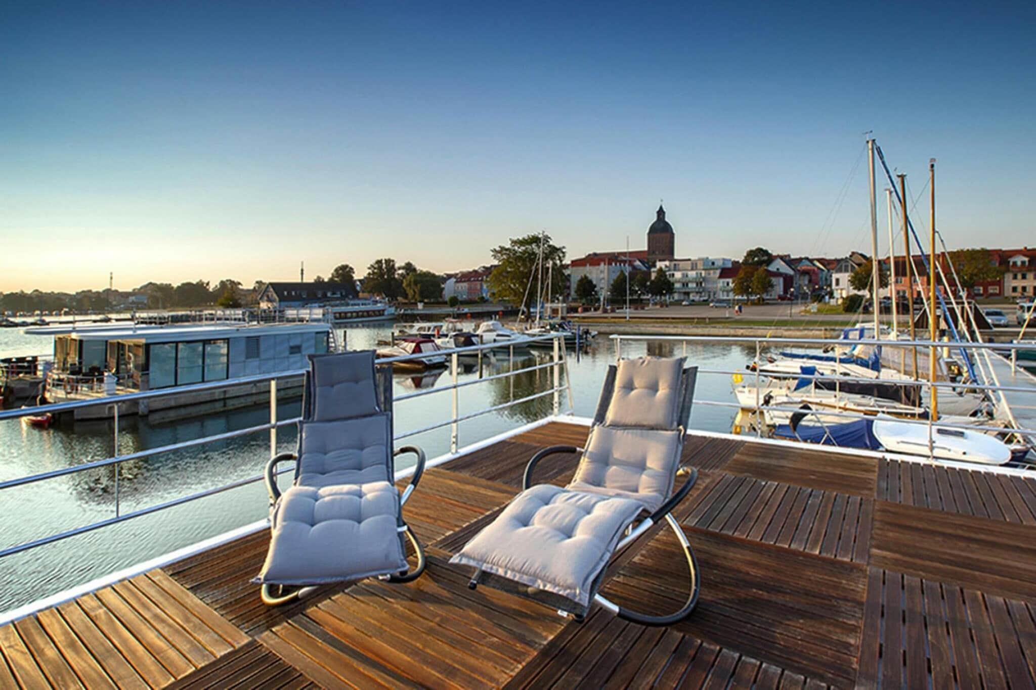 Husbåtferie i første rad: Det moderne flytende huset ligger godt til i den lille byhavnen Ribnitz-Damgarten. Om morgenen går du ut av soverommet ditt og nyter den vakre utsikten over det maritime miljøet og om kvelden feirer du solnedgangen med en solnedgang. Husbåten din har to terrasser, hvorav den ene er en takterrasse. Hvis været tillater det, kan du nyte en drink eller en matbit ute eller gjøre deg komfortabel på utemøblene. Og hvis det blir for kaldt, sørger det romslige interiøret for et hyggelig opphold. Det er også et sykkelstativ for to sykler og en kanoholder direkte på båten. Så ta med sykler eller en kano og utforsk området aktivt. I tillegg til å være et statlig anerkjent feriested, er Ribnitz-Damgarten nå viden kjent som Amber City, siden det er hjem til både det tyske ravmuseet og ravshowfabrikken. Den pittoreske byen ligger mellom hansabyene Rostock og Stralsund - rett ved sammenløpet av Recknitz og Ribnitzer See. Flere restauranter og kafeer, butikker av alle slag og ulike samtidsvitner fra mursteinsgotikken utgjør stedets helt spesielle sjarm. Nærheten til strendene ved Østersjøen er også attraktiv. Detaljer: Forbruksbaserte energikostnader, sengetøy, håndklær, sluttrengjøring WiFi1 kano Aktiviteter i nærheten: Vakre skoger og myrer, jorder og enger og lange avenyer med gamle trær venter på deg rundt Ribnitz-Damgarten - en fantastisk region for syklister. Du vil bli best kjent med den idylliske regionen på varierte turer til bukten eller Østersjøen eller til et av de mange slottene. Utforsk naturreservatet "Unteres Recknitztal" eller besøk friluftsmuseet Klockenhagen - mulighetene er mangfoldige! til slutten