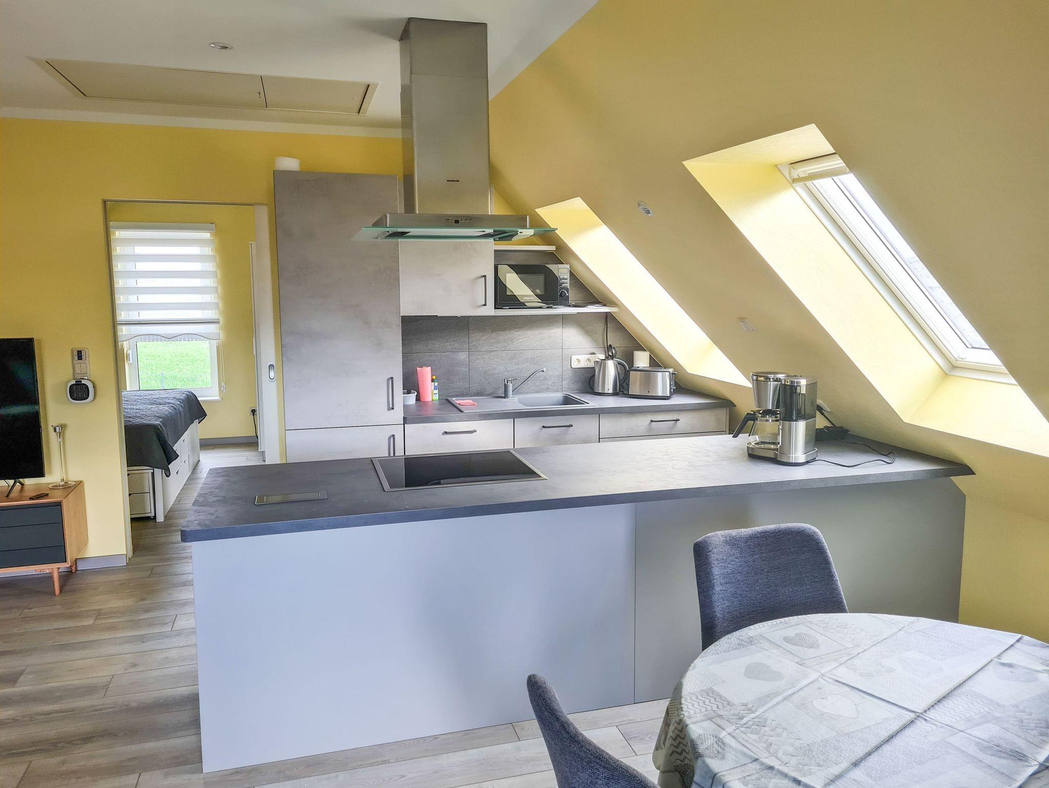Im Wohnzimmer kannst du es dir auf dem bequemen Sofa gemütlich machen und deinen Lieblingsfilm auf dem TV genießen. Die offene Küche ist bestens ausgestattet, damit du dich kulinarisch verwöhnen kannst: Kühlschrank, Herd, Backofen, Spülmaschine, Mikrowelle, Toaster, Wasserkocher und Kaffeemaschine lassen keine Wünsche offen. Hier kannst du selbst die leckersten Gerichte zaubern und dich wohlfühlen.
