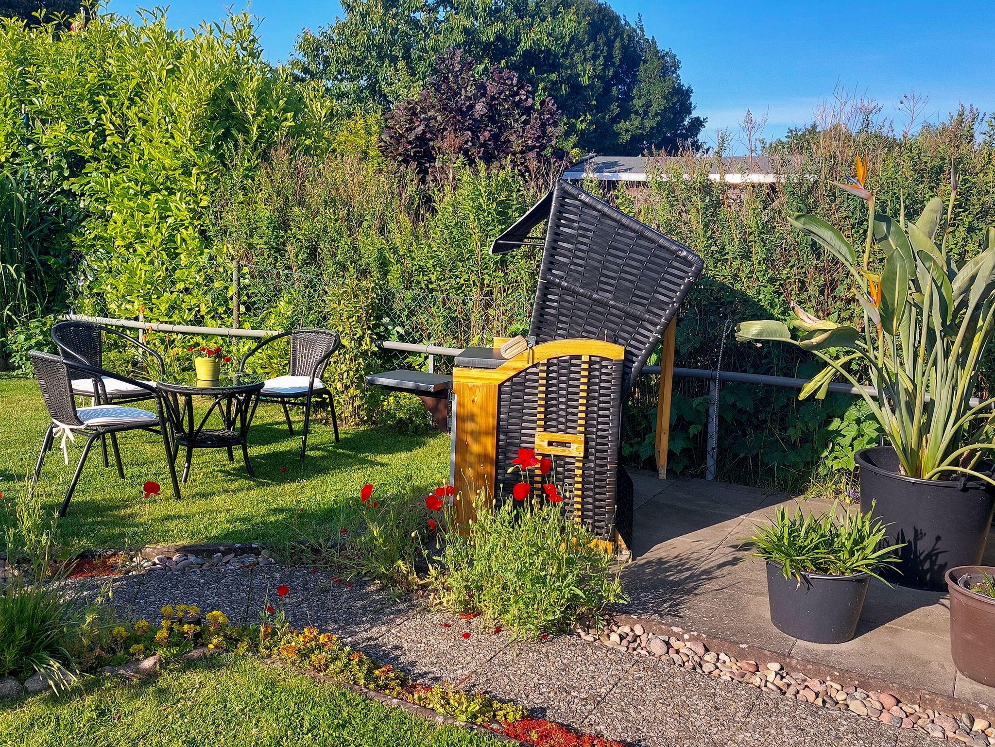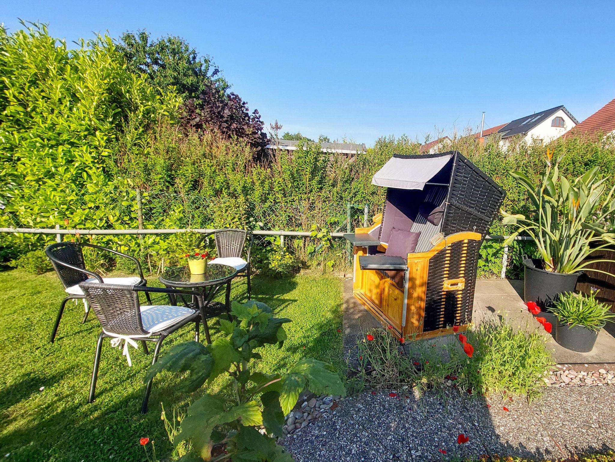 Im Garten zur Mitnutzung findest du viele Möglichkeiten, um die Zeit im Freien zu genießen. Auf der Terrasse kannst du entspannen, im Strandkorb die Sonne genießen oder den Sitzplatz für gesellige Grillabende nutzen ein Grill steht dir ebenfalls zur Verfügung. Für deine Fahrräder gibt es eine praktische Unterstellmöglichkeit.