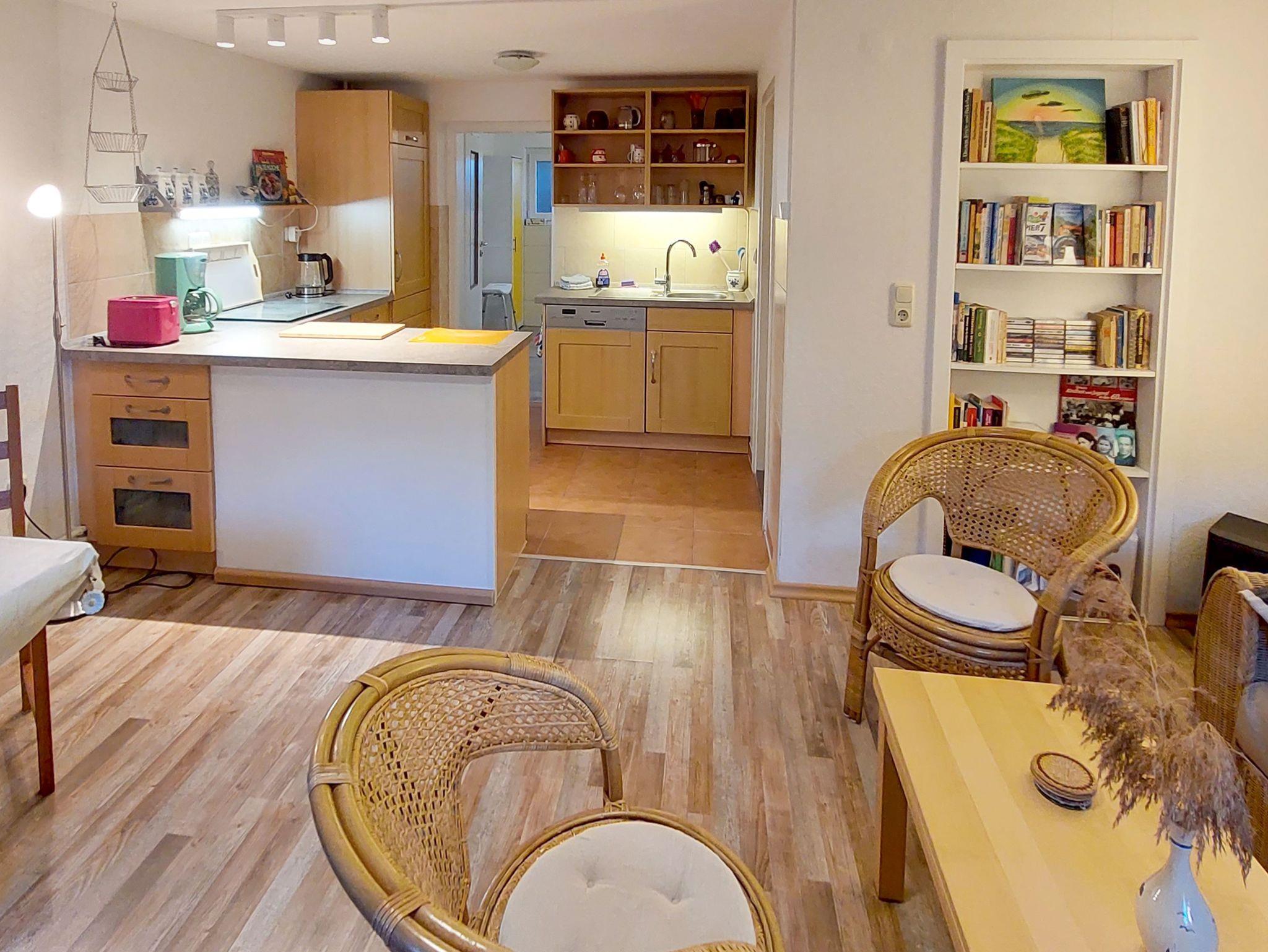 Das Wohnzimmer empfängt dich mit einem bequemen Sofa, einem Esstisch und einem TV ? der perfekte Ort, um gemeinsam zu entspannen oder einen Filmabend zu genießen. Die offene Küche ist voll ausgestattet und lässt keine Wünsche offen: Kühlschrank, Herd, Backofen, Spülmaschine, Toaster, Wasserkocher und Kaffeemaschine stehen bereit. Natürlich findest du auch ausreichend Geschirr und nützliche Küchenhelfer, um dir das Kochen so angenehm wie möglich zu machen.
