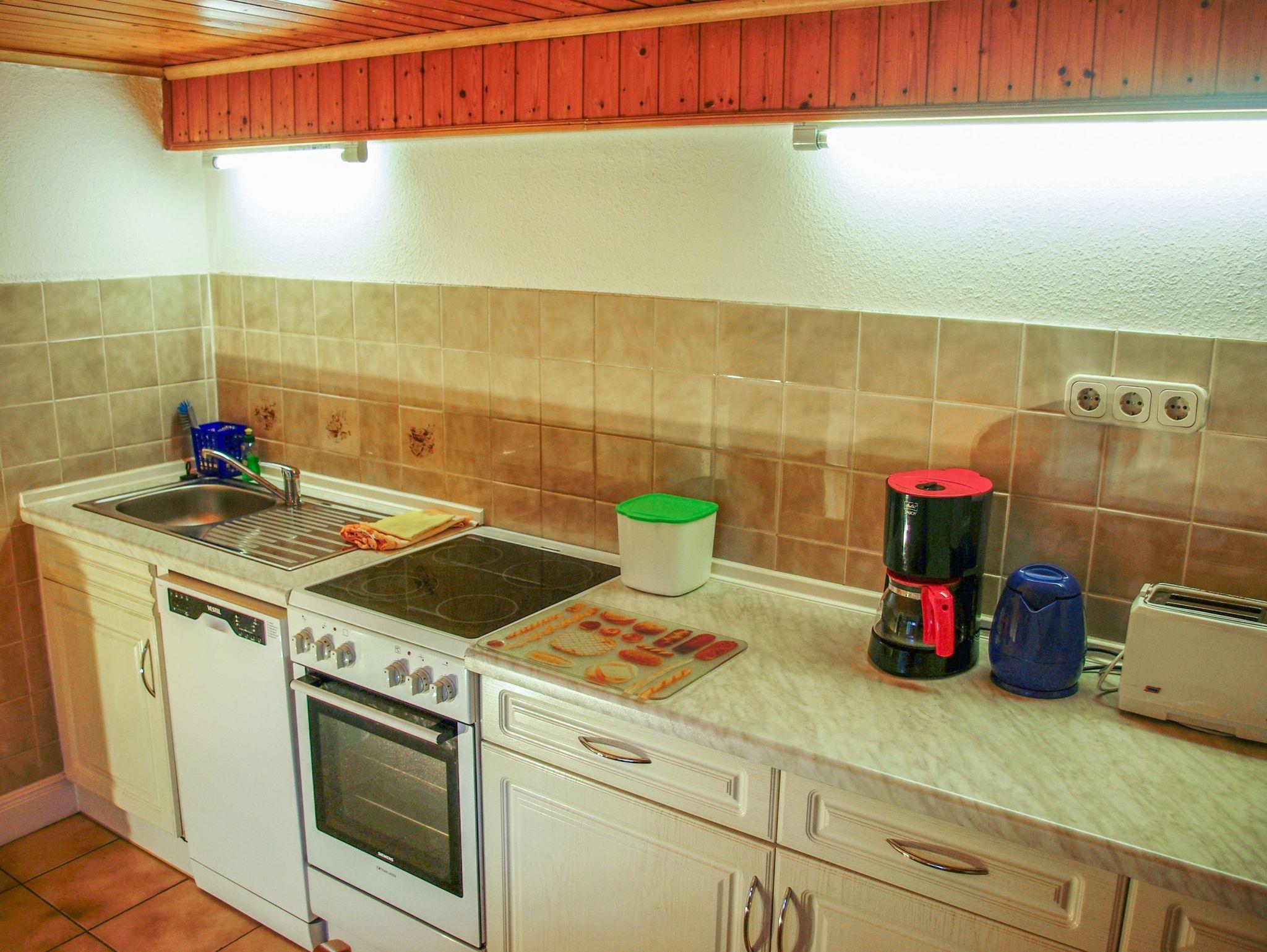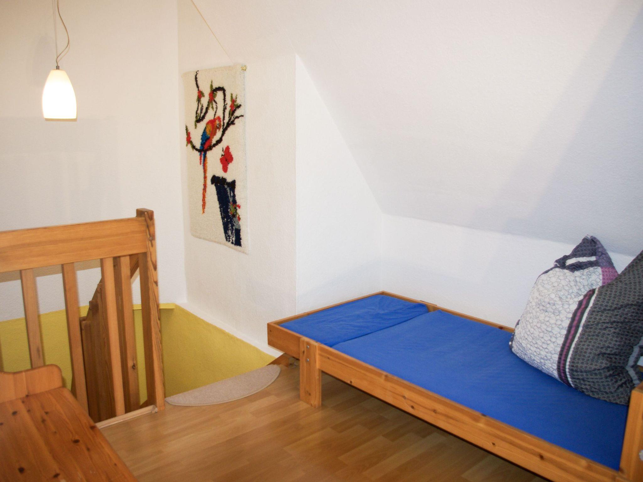 Die Ferienwohnung Joachim ist eine gemütliche Unterkunft für bis zu 2 Erwachsene und ein Kind bis 14 Jahre. Die Wohnung erstreckt sich mit 60 m² über zwei Etagen: Im Erdgeschoss erwartet dich ein gemütliches Wohnzimmer mit Sofa und TV ? der perfekte Ort, um nach einem erlebnisreichen Tag zu entspannen. Die separate Küche ist voll ausgestattet und bietet alles, was du für die Zubereitung deiner Mahlzeiten brauchst: einen Kühlschrank, Backofen, Herd, Spülmaschine, Mikrowelle, Toaster, Wasserkocher, Kaffeemaschine sowie nützliche Küchenhelfer. Das moderne Badezimmer verfügt über eine ebenerdige Dusche und ein WC. Im Obergeschoss befindet sich der Schlafbereich, der über eine Treppe direkt betreten wird und somit nicht separat abgetrennt ist. Hier findest du ein bequemes Doppelbett (180x200), ein Einzelbett (80x180) sowie einen großen Kleiderschrank mit ausreichend Platz für deine Garderobe. Auf der eigenen Terrasse kannst du die frische Luft genießen ? ausgestattet mit einem Grill, einem Sonnenschirm und bequemen Sitzmöbeln.