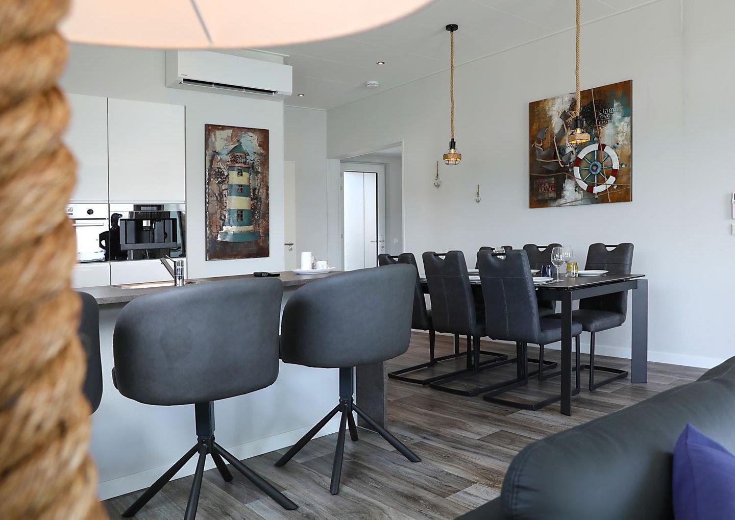 Im Außenbereich lädt eine überdachte Terrasse mit Gartenmöbeln zum Verweilen ein. Sonnenliegen und Sonnenschutz ergänzen das entspannte Platzangebot, und mit dem Elektrogrill lassen sich Mahlzeiten bequem im Freien zubereiten. Durch die Lage auf dem See genießen Sie Wasser und Blick unmittelbar vor der Tür – perfekt zum Schwimmen, für Bootsausflüge oder einfach zum Abschalten am Steg.