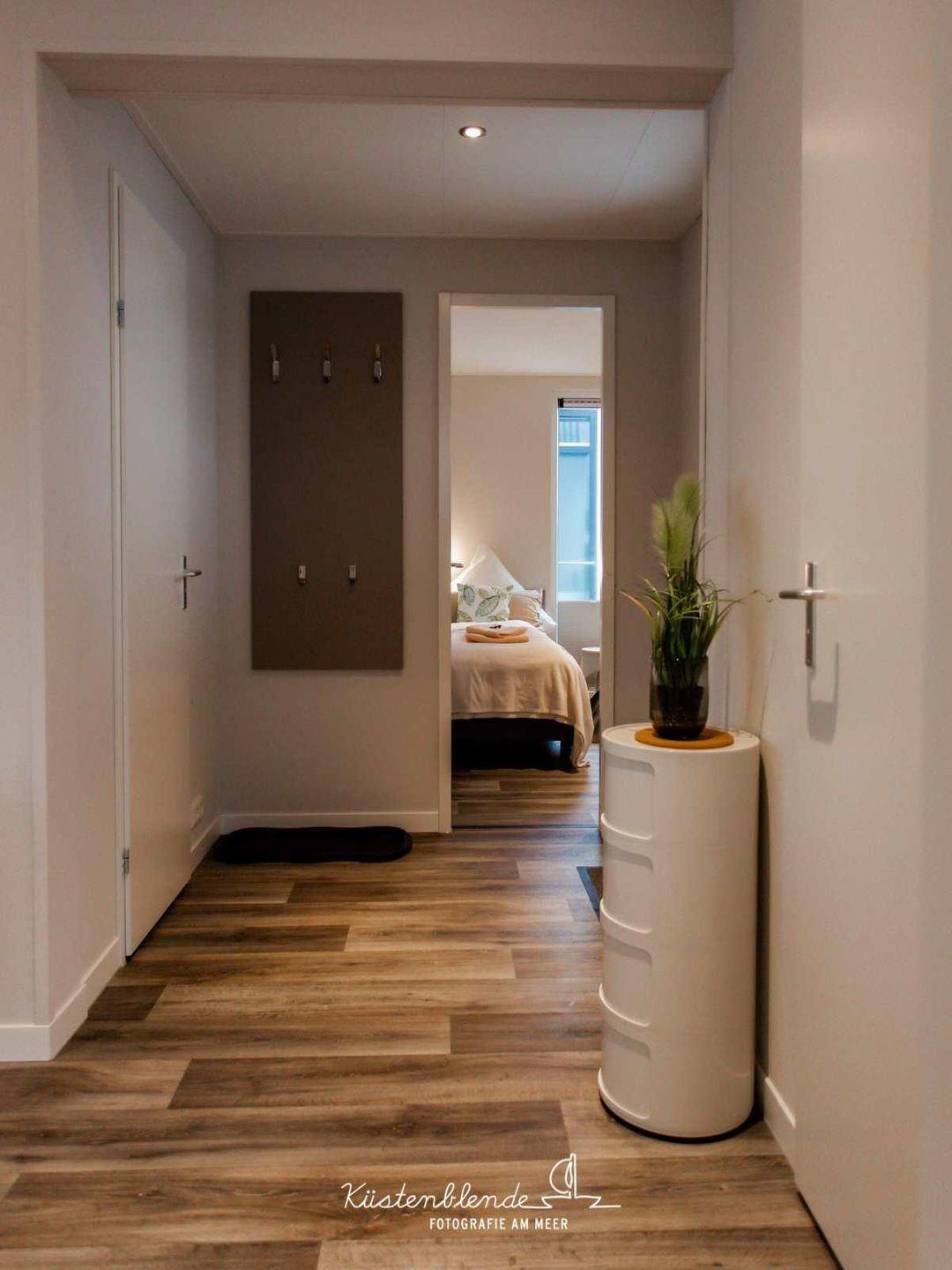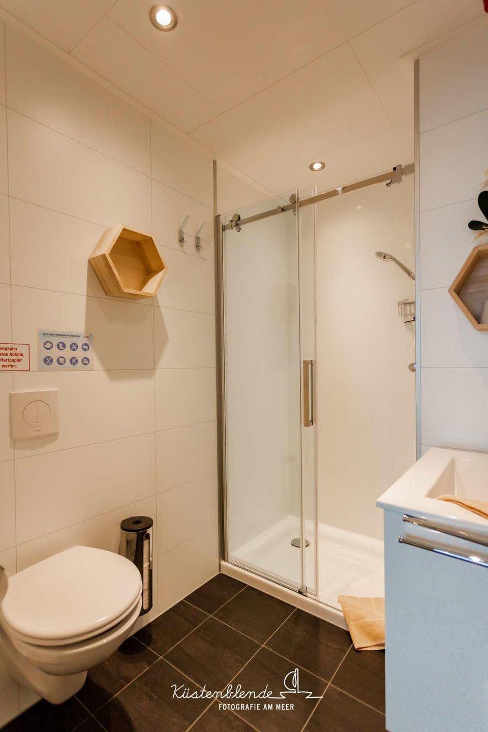 Die Küche ist offen zum Wohnzimmer gestaltet und umfassend ausgestattet: Ceran-Herd, Kühlschrank mit Gefrierfach, Spülmaschine sowie Küchenutensilien, Geschirr und Besteck sind vorhanden. Ergänzt wird dies durch Kaffeemaschine, Wasserkocher, Toaster, Geschirrhandtücher und Abfalleimer – ideal, wenn Sie sich im Urlaub flexibel selbst versorgen möchten. Eine Erstausstattung, Bettwäsche und Handtücher stehen Ihnen ebenfalls zur Verfügung.