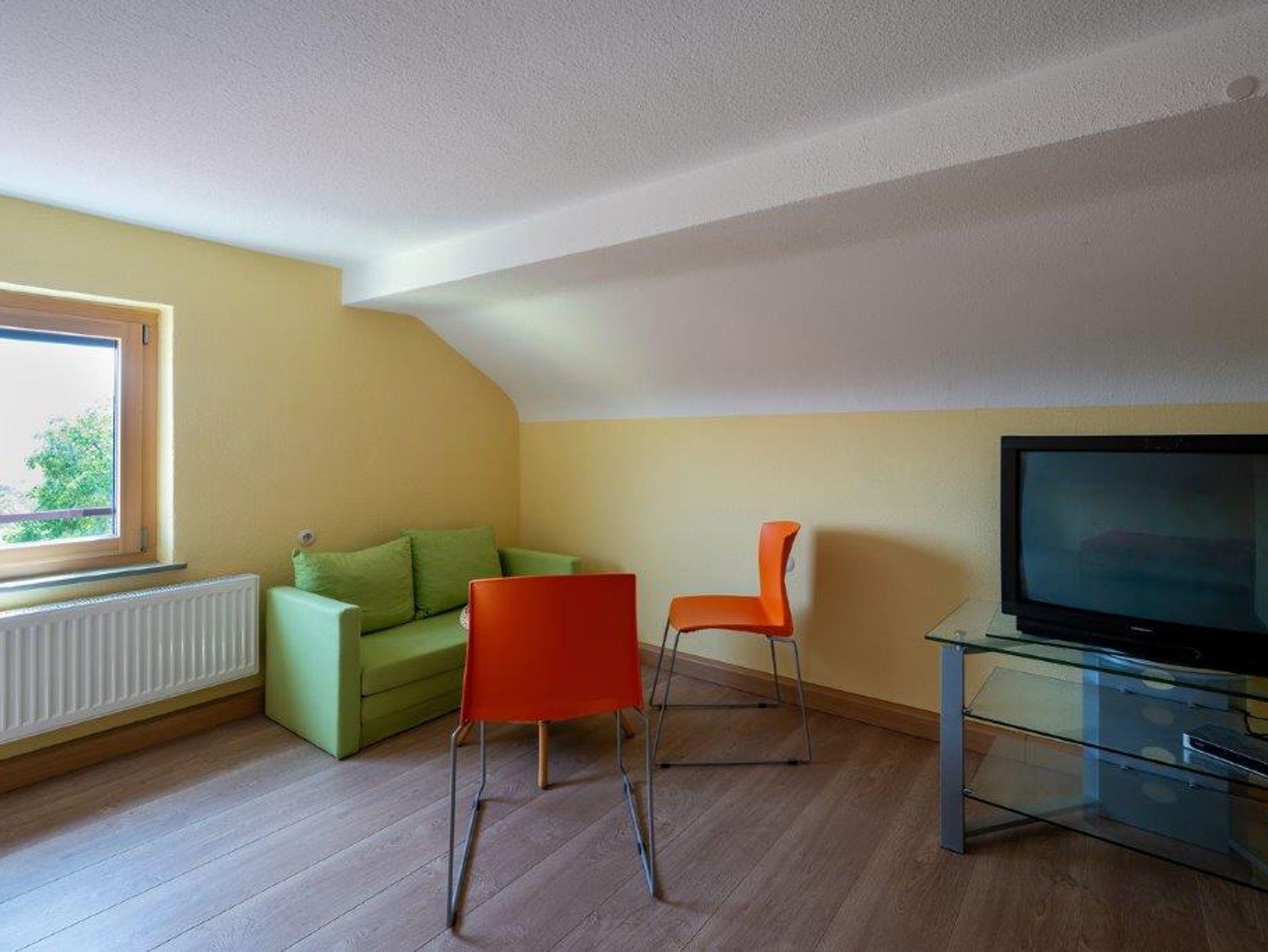 Große sonnige Ferienwohnung über 2 Stockwerke: im 1.OG und im DG, in ländlicher Lage mit direktem Zugang zur Natur und zu wunderschönen Wander- und Radwegen durch den Wald. Nichtraucherwohnung