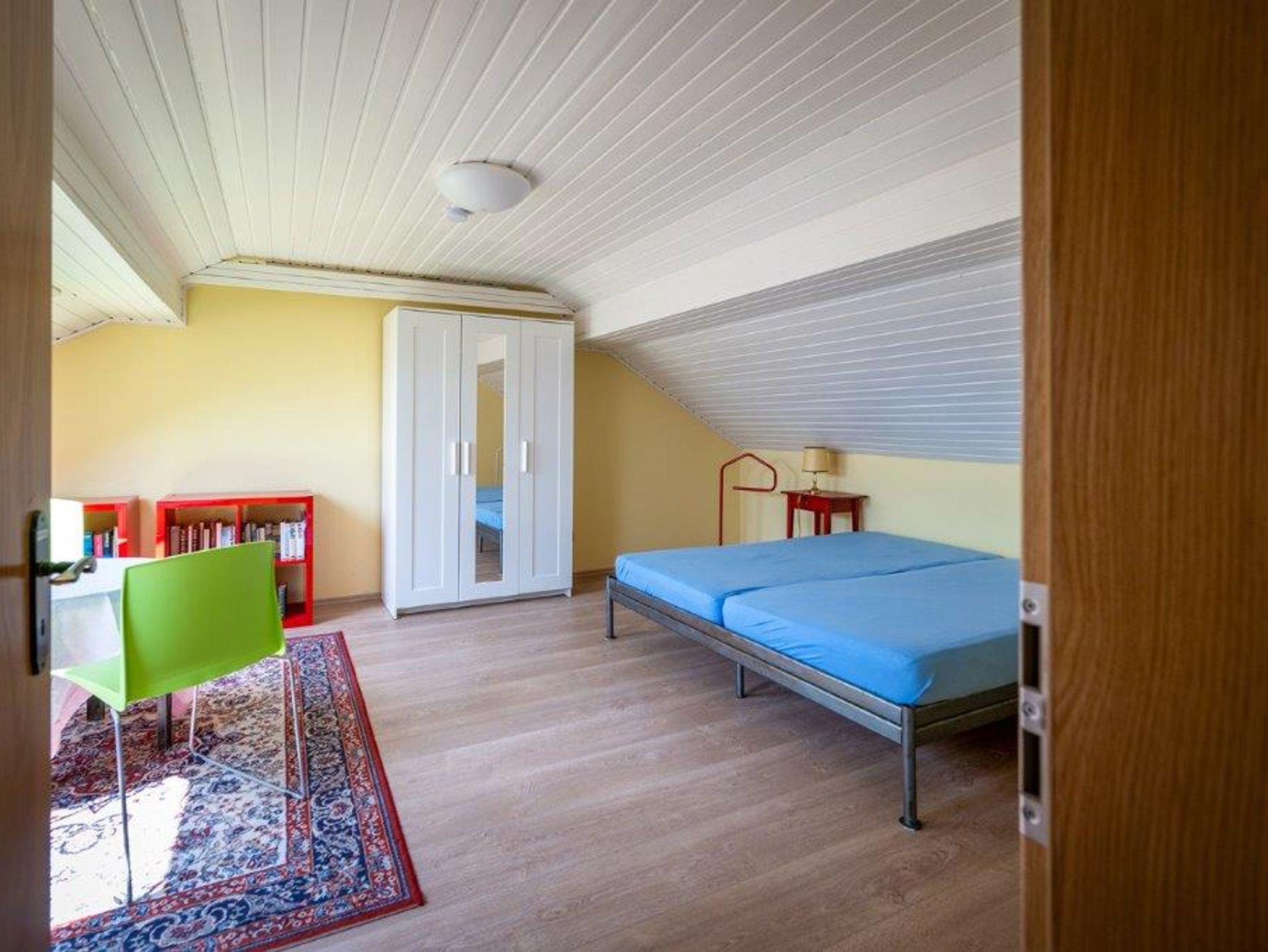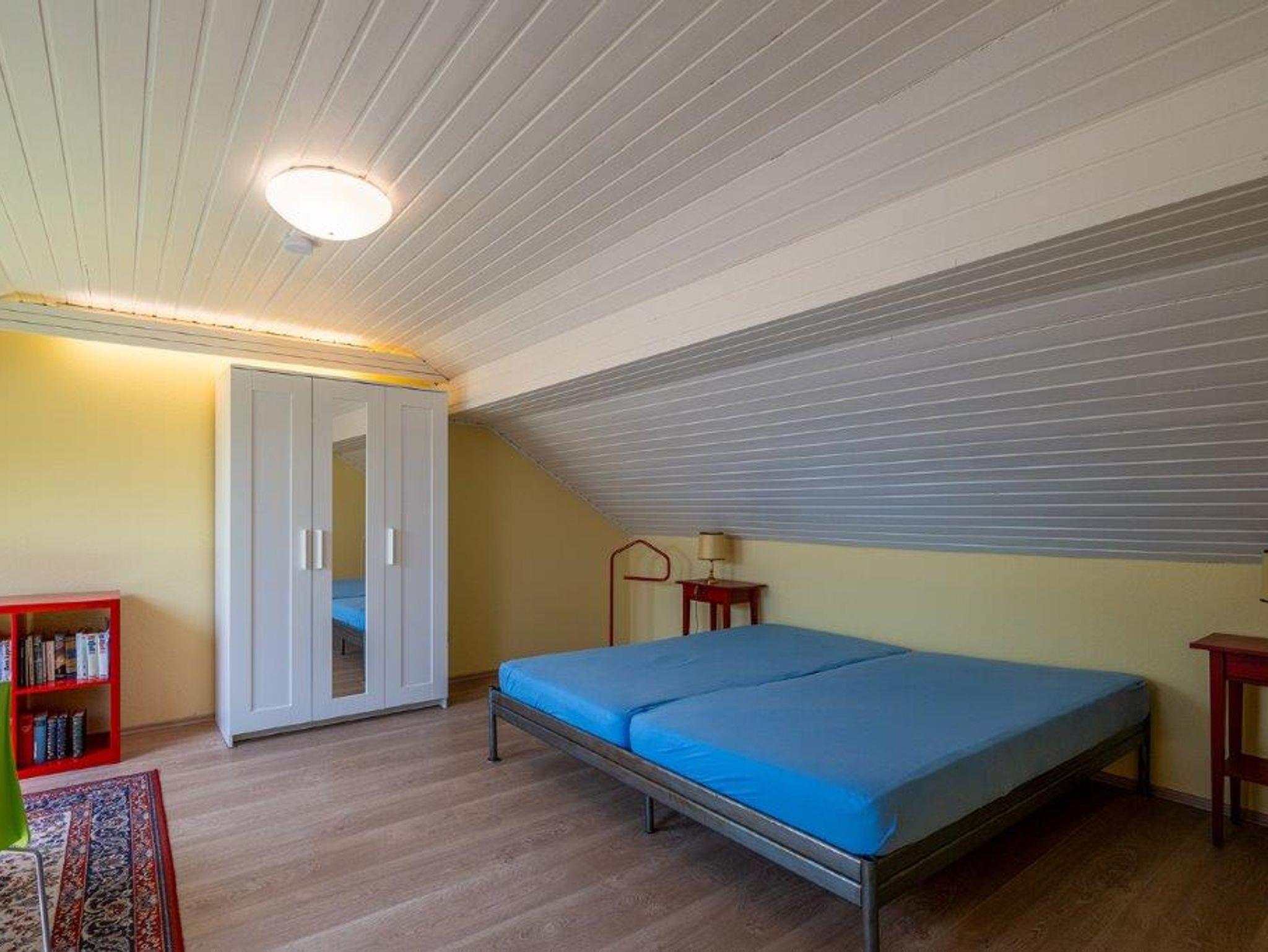 Die Ferienwohnung bietet ein Schlafzimmer mit großem Doppelbett im 1. OG, 2 weitere Schlafzimmer (ein Zimmer mit großem Doppelbett (1,80 x 2,00 m) sowie ein kleines Zimmer mit einem Bett (1,40 x 2,00 m) befinden sich im Dachgeschoss. Der großzügige Wohn- und Essbereich hat einen Südbalkon und eine große nach Westen ausgerichtete Loggia.