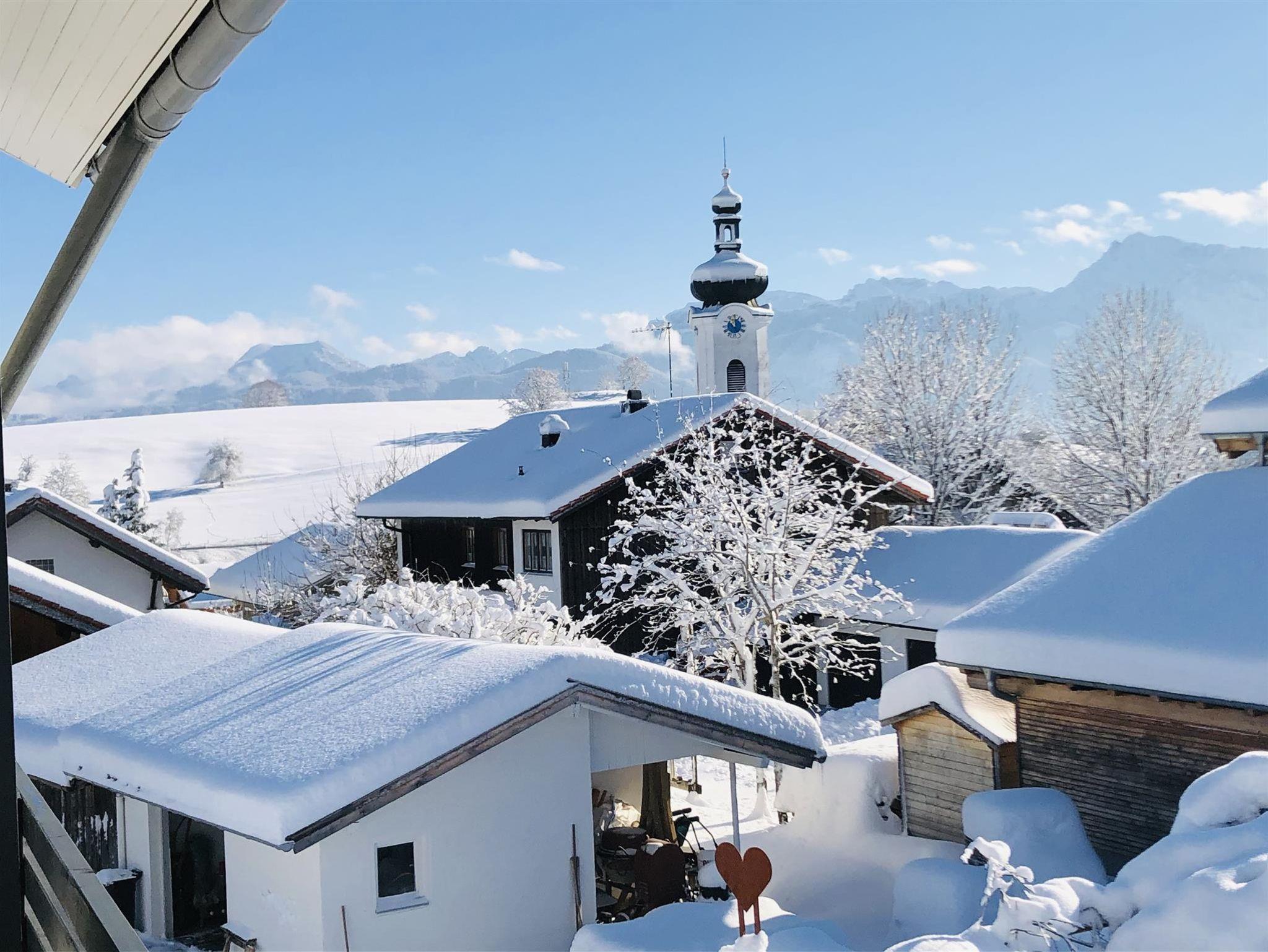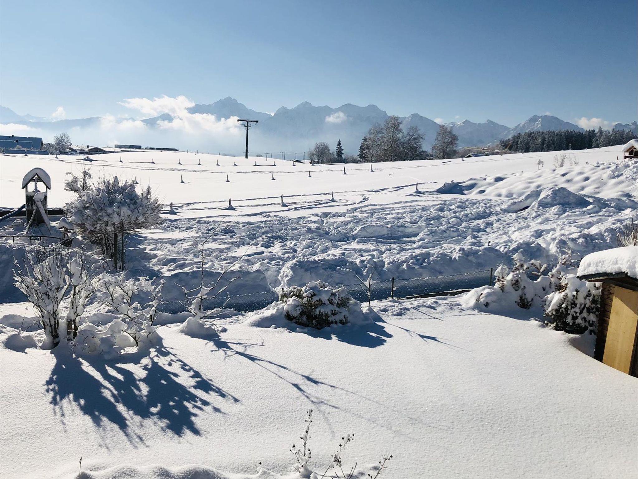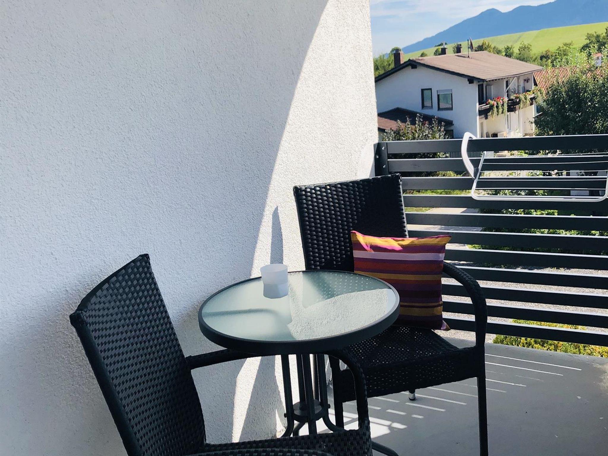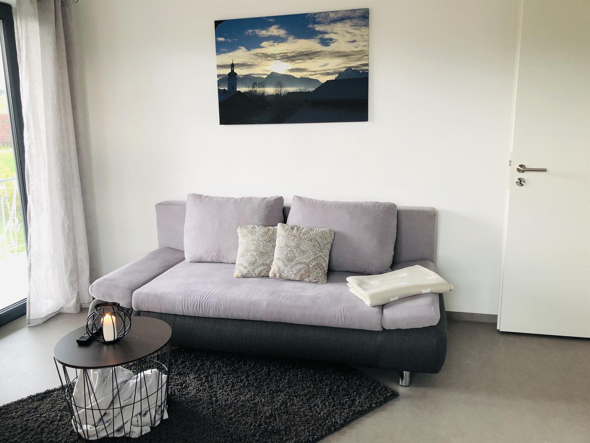 Über die Außentreppe mit separaten Hauseingang gelangen Sie in die Ferienwohnung. Diese verfügt über ein separates Schlafzimmer, einem Wohn-Essbereich und einem Badezimmer. Die Küchenzeile ist mit einer Nespresso Kaffeemaschine, Wasserkocher und Toaster ausgestattet. Auf dem Sofa können Sie den Blick in die Berge genießen.