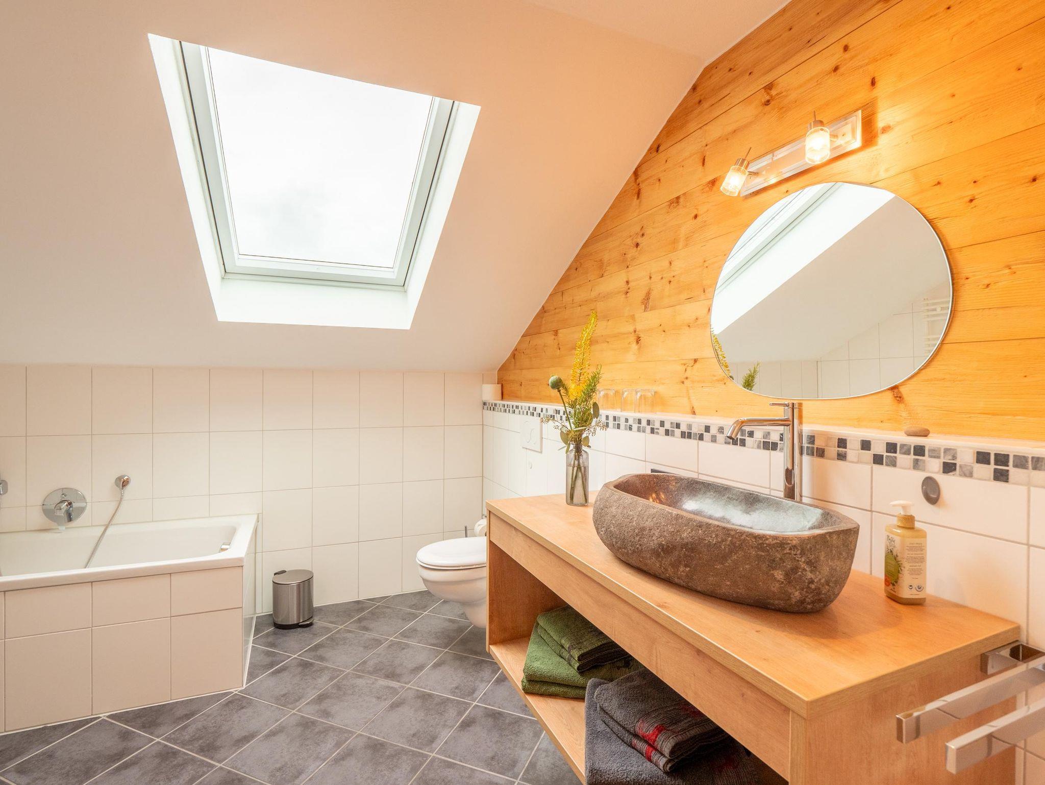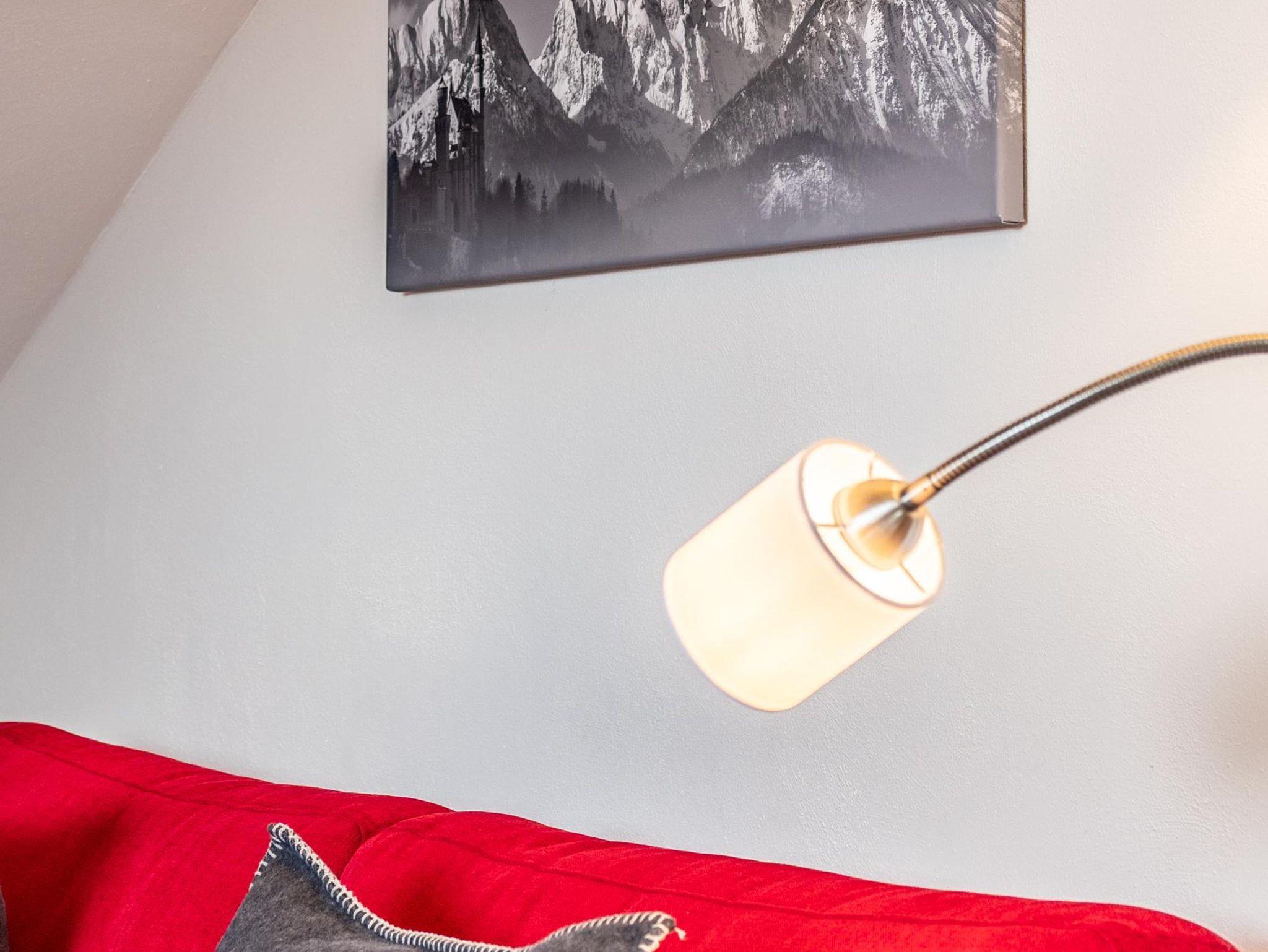 Die neu ausgebaute Ferienatelierwohnung im Dachgeschoss überzeugt mit seinem freien Blick auf die Alpen.