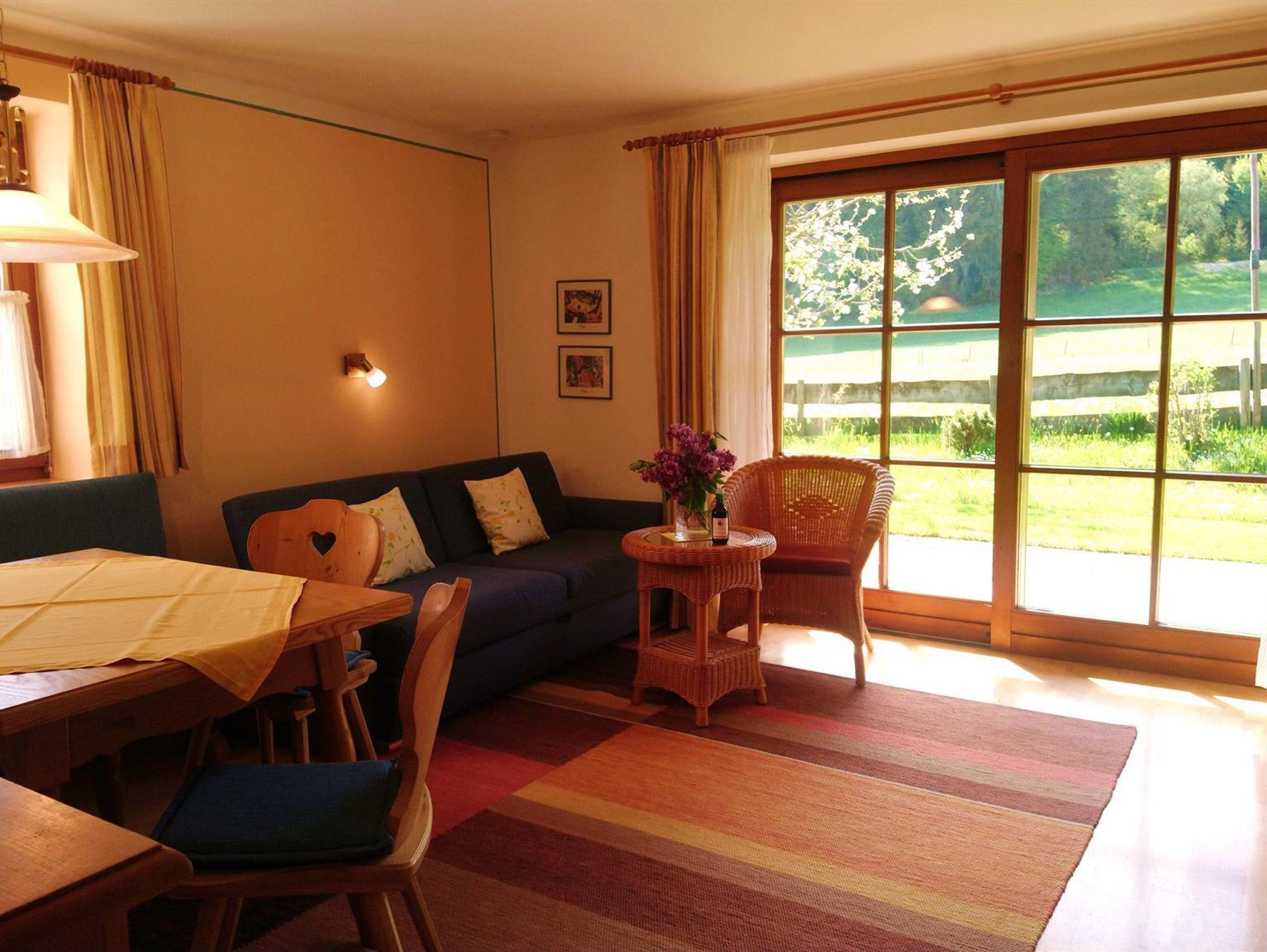 Im Erdgeschoß befindet sich ein gemütlicher Wohnraum mitschöner Essecke, Südfenster und großer Glasschiebetür zur möblierten Westterrasse. (ca. 50qm)